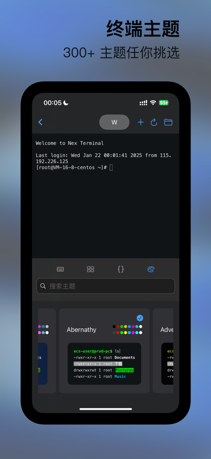 Nex Terminal 免费版 · 不限数量的服务器管理,分组管理 · 终端基础功能 · iPad 外接键盘支持 · 使用iCloud在多台设备上同步数据 · 脚本片段 · 一键快速复制终端会话 · 20个终端主题 · 2条端口转发规则限制 · 文件管理(上传,下载,压缩,解压缩,拷贝,删除,重命名,图片查看,文件权限,复制路径,搜索,SSH目录跟随) · 文件传输大小500M限制 · 光标样式设置 · 选择复制&右键粘贴 · 终端回滚区设置 · 深色,浅色外观切换 · 沉浸模式设置 Nex Terminal Pro版 · 免费版所有功能 · 300+漂亮终端主题 · 多级跳板机 · 不限数量的端口转发 · 脚本片段在多服务器自动化运行 · 不限大小的文件传输 · 断点续传 · 文本编辑器,支持代码高亮 · 会员徽章标识 · 解锁Mac, iPhone,iPad上全部Pro 功能