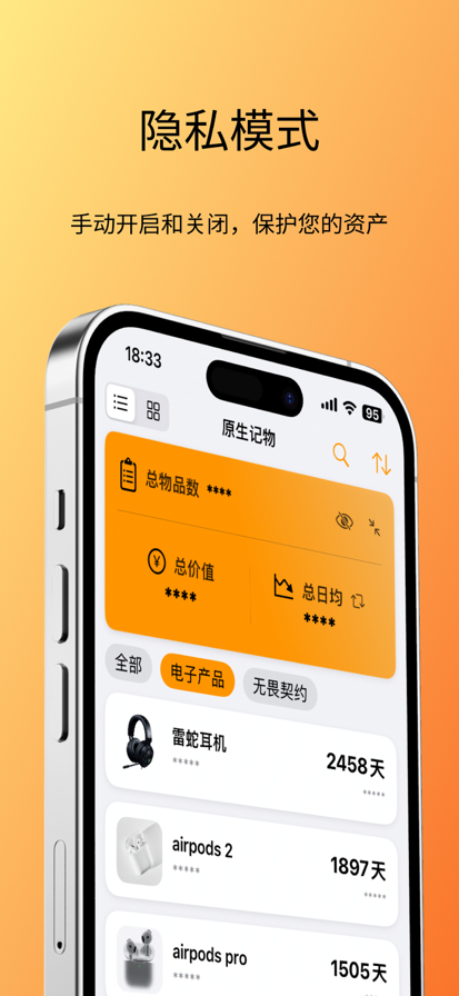 【多货币原值记录】 -支持同时使用多种货币单位记录物品,人民币/美元/港币/英镑......等 【全免费的皮肤换装】 -治愈色多色皮肤 -所有皮肤颜色全部免费使用 -支持自定义上传皮肤 【多种整理术】 -支持物品分类、打标签 -支持对物品排序、查找、筛选 【详细记录】 -支持物品记录添加文字描述 -支持最多3张的物品图片 【保护隐私】 -所有信息都将本地存储 -支持使用”小眼睛“开关隐藏物品价格