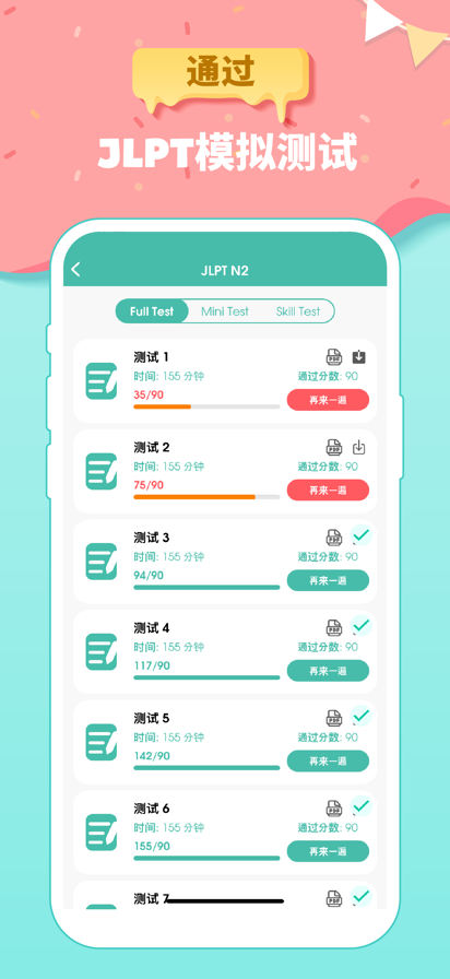 MOJiTest是专注于日语能力考(JLPT)的专业平台,致力于帮助百万日语爱好者零基础自学考级。我们提供N1-N5全套权威词库、考研专用蓝宝书、官方合作绿宝书、高考必修选修全套词库,更有历年配套真题及解析,让你沉浸模拟上场不慌张。背单词、做真题,就用MOJiTest! 【历年真题-配套全】 ● 收录2010-2022年JLPT历年真题及解析,最新真题持续更新中! ● 支持单词/语法/阅读/听力专项训练,碎片时间高效刷题,巩固薄弱知识点。 ● 沉浸式模拟真实考试系统,告别纸质刷题,帮你适应真实考场节奏。 ● 支持长按选词查词,一键解析准确高效。 【100+词书-背词快】 ● 针对JLPT备考/日语高考/考研日语等常见考试,配备红宝书、官方绿宝书、新完全掌握、JLPT真题词汇、考研日语蓝宝书、高中日语必修等全套人工精校词库。 ● 结合艾宾浩斯遗忘曲线,制定科学背词计划,让记忆更牢固! ● 全部词书进度共享,题型科学有效可自定义,助你提升背词效率! ● 难背的单词一键收藏,单独复习效率高! 【搜索识别-解题快】 ● 强大搜索引擎支持,不仅能够查单词、搜语法,还能找真题。 ● 拍照识别,不会的真题直接拍,一键找题给解析。 【沉浸自习-效率高】 ● 加入MOJi自习室,与上万小伙伴共同学习、相互激励。 ● 支持自创学习小组,组内成员进度共享,互相鼓励送花花。 【更多特色功能】 ● 错题本 - 难题好题一件收藏,点对点练习提高正确率,告别题海战术。 ● 打卡日历 - 实时记录累计学词量、学习天数、学习时长,学习进度了如指掌。坚持打卡还能获得Moji独有勋章喔! ● 笔记收藏 - 时刻记录学习笔记,把不会的单词、语法全都收入囊中,反复学习。 ● 桌面组件 - 根据个人喜好设置桌面组件形式与风格,碎片化时间背词神器,背词进度一目了然! ● 学习提醒 - 设置提醒,学习进度不落下。 ● 发音调整 - 个性调整词书发音模式、语速快慢和发音次数,适配你的听力习惯。 更多有趣有用功能正在持续探索中,欢迎支持与关注~ 【船友推荐语】 “才发现这个学习神器,相见恨晚!” “一次过JLPT就靠MOJi了!” “2个月速通N1-刷历年真题我只用MOJiTest,是真的很全啊!” “日语刷题必备app之MOJiTest,搭配MOJi辞書一起使用,方便快捷。” 关于我们 『交流をより自然に』 - MOJi以此为宗旨,结合百万日语学习用户需求,已打造MOJi辞書(じしょ)、MOJi阅读、MOJiTest、MOJiKana等日语全方位学习矩阵。MOJi将深刻围绕「体验」进行持续改进,これからも、よろしくお願いしますー 联系我们 ● 通过APP>设置>联系我们 ● 邮箱:mojisho.support@mail.shareintelli.com 了解更多 ● 微信公众号:MOJi辞書(←客服找这里) ● 小红书:MOJi辞書 ● 微博:MOJI_SERIES ● Twitter:MOJI_SERIES