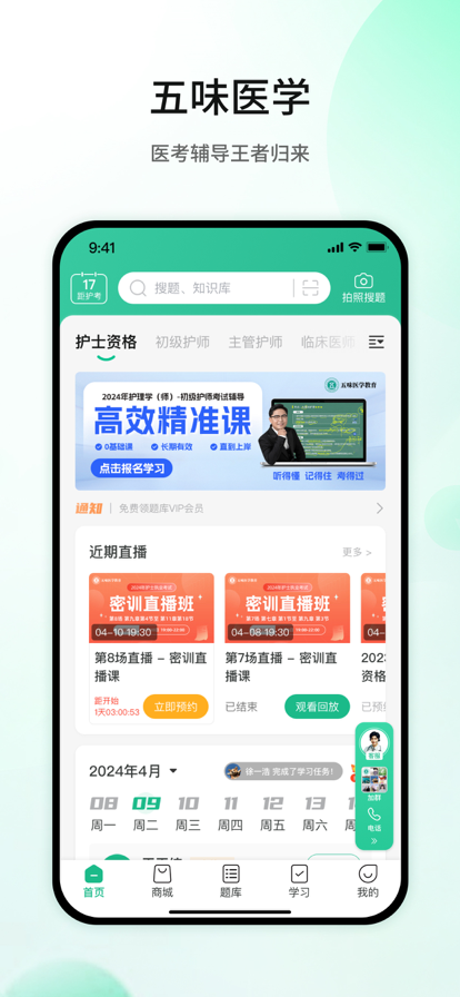 五味医学APP,是全国千百家卫生院校共同选择的护考与执医辅导平台,医学AI大模型驱动的专业医学知识服务商。 五味医学APP是医学考试辅导专家,提供全面的医学考试辅导服务,包括护理类(护士资格、初级护师、主管护师、护理实习、护理招聘考试、护理三基、护理期中期末考试等)、医师类(临床资格、临床考研、中医资格、中西医结合等)和药学类(执业药师、药学职称)等,特色功能包括: 海量题库:全面覆盖历年真题、章节练习、模拟试卷、人机对话,试题配有解析和教材原文,支持智能搜索考点试题。 优质课程:依据考试大纲精讲核心知识,结合口诀与图解,帮助用户轻松掌握考试重点与难点。 任务计划:根据学习进度智能规划每日任务,确保高效复习。 知识库:提供教材原文、图谱、口诀等,随时查阅、记忆。 专业答疑:AI智能答疑与专业辅导员双重保障,解答疑惑,攻克难题。 五味医学APP是医学院校教学助手,为医学院校提供简便易用的数字教材制作和教学平台,精准高效的AI生成医学内容服务。除常规功能外,我们还提供独特的训练营模式,帮助医学院校老师有序安排学习任务,提供直播、视频、音频、电子书、题库等零加工医学资源服务。 作为国内医学大模型的领先探索者,五味医学APP引领行业发展,提供扫码拍照大模型解答、题库AI解析、实时视频课程总结、课后智能出题与评估等服务。在AI的加持下,医学内容获取不再有门槛,再深奥的内容也触手可得。 打开“五味医学APP”,你将进入一座线上的医学宝库,在这里,你能遇到各路医学大咖、人卫图书主编等。在这里,你能轻松找到你的校友、老师,也能结交全国各地志同道合的学友。 你我悉知,学医不易,唯有历经“五味”,方能品味人生的甜美。 遇见五味医学,遇见更加自律的自己,成就更加美好的未来!