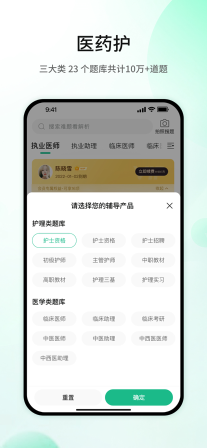 医考帮是一家专注于医学考试服务的教育品牌,为医学生、医疗从业者提供高质量的备考资源和辅导服务。主营产品有面向C端用户的医考帮APP、护考帮APP、医学考研面授集训营,和面向B端用户(医院和医学院校)的医学考试系统。 医考帮APP用户覆盖了医药护技人群,从院校教育、毕业后教育和继续教育全职业生涯,从期末、考研、医师资格、规培、职称考试等300多个考试学科,全站题目总数达到360万,服务用户超过500万,每日活跃用户达30万,已成为医学生及医生学习备考与考试刷题的首选品牌。 【亮点一:权威题库】 包含历年真题、精选练习题、模考卷、预测卷的精品题库,业内首创考点还原和全选项标准解析,每年按照最新大考试纲优化题目和题型,真题权威性与更新速度领先行业。 【亮点二:功能多样】 题库分类科学合理,按学科、按年份、按系统、按题型,按考频;题库支持多种刷题模式,练习模式、快刷模式、测试模式、背题模式;收藏题、点赞题、错题、笔记、AI自助组题、刷题统计等实用功能,满足用户多样化的学习需求。 【亮点三:题库评论】 题库设置题目评论区,将每一道题目作为独立主题展开讨论,有大量学霸总结记忆口诀和解题技巧,名师及研究生学长学姐精析考点,为枯燥的刷题学习增加互动性、趣味性,提高学习效率。 【亮点四:医学论坛】 深度融合“社交+学习”场景,打造从“工具”到“生态”的互动社区,APP内置论坛有上百名学长学姐在线答疑,数万名考生学习交流,已成为医学考生备考路上的精神家园。 【使用问题或意见建议】 关于医考帮APP的建议或使用问题,可以通过以下渠道联系我们 联系客服路径:我的-帮助中心-联系客服 建议收集路径:我的-意见反馈 【关注我们】 欢迎通过以下渠道了解医考帮,获取一手考试信息和复习资料 公众号:医考帮APP 小程序:医考帮 微博:医考帮 视频号:医考帮APP 抖音:医考帮 小红书:医考帮APP Bilibili:医考帮