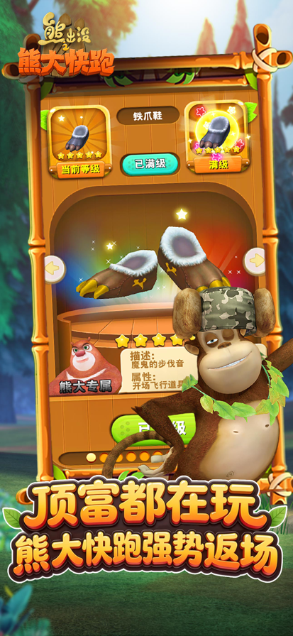 春天降临,万物复苏。熊大熊二,引领冒险跑酷潮流,新的一年让熊出没与你一起度过! 【春暖花开 热力冒险】 游戏的整体风格重新回到了充满绿意的草地森林,让你感受春天的生机盎然。更多特效更新和细节优化,还等玩家自己来游戏中亲自发现哦~角色细节更加精致,为你带来全新视觉盛宴!关卡设计全面优化,游戏节奏感更强,熊大、熊二的跑酷之旅更加精彩! 【超强萌宠 百变造型】 惊险刺激的冒险怎能少了宠物的陪伴,风翼白虎、福运青龙、机械熊猫、飞天小哈…每个宠物都有自己特殊的技能,让你在冒险中如虎添翼,达成解锁条件即可免费拥有,赶紧把这些可爱迷人的小宝贝领回家吧。游戏中还可以给熊大熊二随意换装哦,头戴骷髅帽的船长熊大,手拿金箍棒的美熊王,翱翔太空的宇航熊,总有一款是你的菜。 【多样玩法 引爆潮流】 萌宠孵化养成,乐趣无穷,强大的宠物属性加成,让你轻松跑出高分。酷炫跑鞋降临,帅气外表加上特殊加成,让你的冒险之旅惊喜连连!紧张刺激的关卡跑道、还原经典的人物形象、更有挑战极限的PK对战等你来玩! 此应用包含以下订阅选项: - 黄金贵族,¥30元/月。 - 订阅成功以后,订阅期间每天都可以免费领取钻石*15、金币*300、安全帽*2、吸铁石*3。每月共计可以领取钻石*450、金币*9000、安全帽*60、吸铁石*90。首次订阅还将额外赠送厨师强*1。 - 在确认购买后,将向iTunes账户收取费用。订阅将自动续订,除非您在当前订阅期结束前至少提前24小时关闭自动续订。 - 在当前订阅期结束前24小时内将向账户收取续订费用,并确认续订费用。 - 用户可以管理订阅,购买后可前往用户账户设置来关闭自动续订。在免费试用期间购买高级订阅时,任何未使用的免费试用期(如果提供)将被回收。 - 用户条款(http://www.joymeng.com/user_privacy.html) - 隐私政策(http://www.joymeng.com/privacy_protection.html)