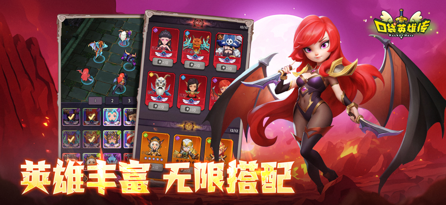 《口袋英雄传》是一款3D卡牌养成手游。英雄种类丰富,刻画精美!可360度旋转,欣赏卡牌的特色。关卡设定有趣,奖励丰富,给予你推图的乐趣!玩法丰富,打发闲暇时间。英雄技能炫酷,站位讲究,战队的搭配和培养是游戏的一大亮点!技能连携、阵容搭配,给予你无穷的乐趣! =经典的角色找回以前那份初心= 游戏有大量的英雄角色,个个都是曾经的经典,爷青回,让我找回以前的那份感动和初心!熟悉的角色形象、熟悉的配方。难道你不想重温经典,把他们收集到队伍中,快乐推图么?! =经典的即时战斗模式= 在《口袋英雄传》中,采用经典的45度的俯视角展示战斗,让战斗的精彩尽收眼底!5V5的即时战斗模式,精彩刺激又不会冗长。英雄的怒气值满后,释放华丽大招,给战斗带来了盛宴和乐趣。 =炫酷技能尽享视觉盛宴= 炫酷的技能,每个英雄的怒气技都是一场华丽的展示。每当英雄怒气值满时,都可以释放大招。大招在释放时,会进入短暂的时停。酷炫的技能让你享受一场精彩的视觉盛宴,给战斗添加了不少的色彩和乐趣;让战斗不无聊!如船长的大招会召唤一条水龙卷,眩晕敌方全体;整个屏幕都会微暗,让大招的展示效果更为突出。 =丰富挑战乐此不疲= 游戏除了保留经典的快乐推图之外,我们还配置了大量有趣的挑战——罪魂之塔、圣域远征、奥山战场、时光之穴等等。不同的副本挑战都有其独特的乐趣和挑战。如罪魂之塔就是最好的战力检验场地;只有强者才能快人一步,问鼎魂塔最高层。如时光之穴,挑战奇遇的BOSS,对BOSS造成的伤害越高,得到的奖励越多也越丰厚。玩法挑战丰富,给你一样的游戏体验。 精良的制作,经典再现!英雄收集,快乐养成!让我们一起重温这经典的卡牌养成游戏吧!