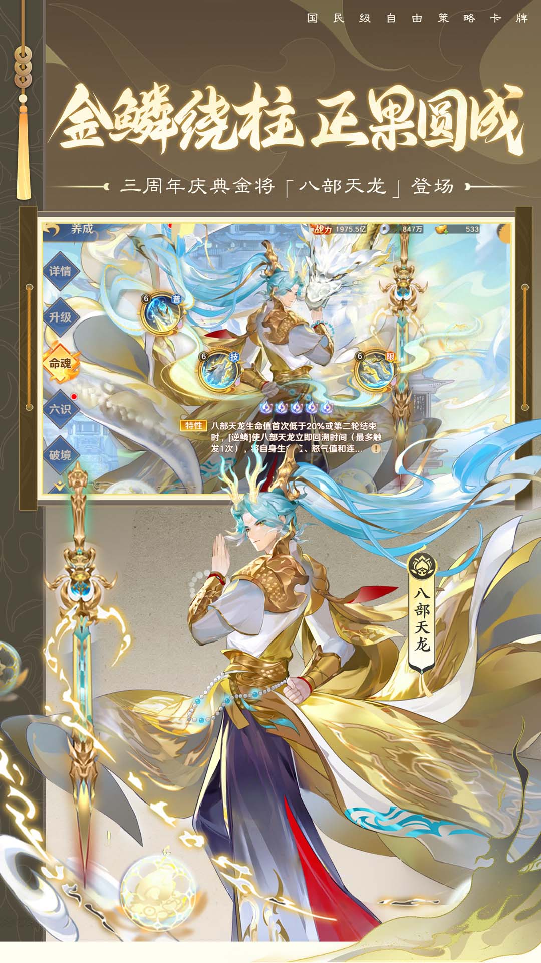 峥嵘岁月仍犹在,策马扬鞭战三国。 高颜值卡牌王者《铁杆三国》自选神魔、蟠龙神兵登录即领!汉业即危,大厦将倾,黄巾丛立,值此乱世之际,各路魂武将携手而来,全新魂武玩法,更多阵容搭配,更多阵营选择! 多种革新玩法,一键无损换将,轻松打造最强军团联盟,化身公会精英,与群雄逐鹿谁与争锋!告别品阶碾压,革新排位赛匹配机制,创造公平竞技的战斗环境,与好友组队,在3V3、5V5的PVP玩法中也能逆风翻盘,主宰战场。更有豪华福利,冲级送千抽,开荒必备的超强五星名将免费送,助你畅玩三国更轻松。三国不止于魏蜀吴,百家纵横,强于百万之师,快来共赴一场别具武林风味的三国幻想之旅吧,我在三国等着你! 【冲级送千抽,超强五星武将免费领】 主公角色每提升10级,即可触发免费三十连,自选十连,总共累计1000抽!通关主线副本后,还将额外领取丰厚元宝、高级寻访令、武将碎片等冲榜必备奖励! 【攻城掠地,打造最强军团联盟】 全新跨服玩法燃情登场,军团公会互帮互助,一策奇谋燃尽天下九州,普天率土垂手可得,快来三国战场一起打造最强军团联盟吧! 【经典再续,颠覆传统卡牌玩法】 一键换将资源零损耗,超多隐藏福利等你发现。跳出固定阵容思维束缚,随心搭配猛将谋臣,探索百变阵容养成套路,以奇制胜,与公会一起争夺无上荣耀! 【佛系放置,告别假躺赢】 多种护肝设计助力主公畅玩新三国,1天登录1次,领海量离线奖励,推图扫荡更轻松。拒绝内卷,自动战斗一键跳过,拒绝爆肝,养肝护肾不掉头发!0氪金打造超强阵容,带你领略三国世界的魅力!