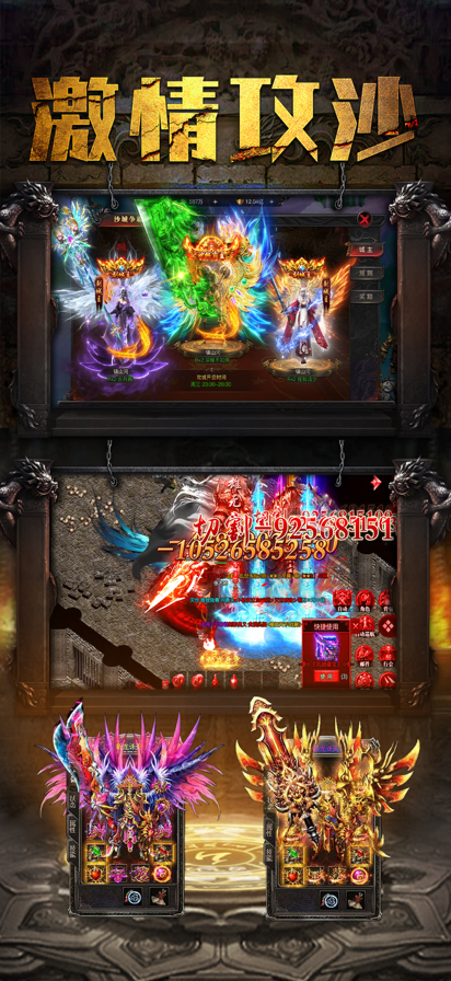 这是一款以经典传奇端游为背景蓝图制作的千人热血攻城PK手游。炫酷的特效和还原的三职业的技能带给你更加精彩的战斗,轻松打怪、杀戮盛宴等你体验,还有各种福利等着你,赶快加入吧。