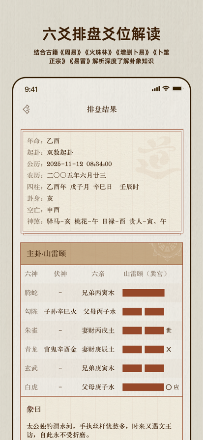 掌中千卷,千年同观。 尽收经史子集与术数群经: 《周易正义》《道德经注》《论语集解》《庄子疏》《黄帝内经》《山海经》《康熙字典》《三命通会》《渊海子平》《紫微斗数全书》《穷通宝鉴》《滴天髓》《子平真诠》《六壬大全》《奇门遁甲统宗》《卜法详考》《梅花易数》《文墨天机》《玉井奥诀》《柳庄相法》《麻衣神相》《神相全编》《玉匣记》《协纪辨方书》《永乐大典民俗卷》…… 皆原典全文,附注疏、白话、当代参悟。 于斯,可静读圣贤之言, 可依《三命通会》推步、《渊海子平》排盘、《紫微斗数全书》布宫、《卜法详考》起课、《柳庄相法》观相、《协纪辨方》选课、《玉匣记》定局。 皆直引原典,循古人旧法, 一依古籍,不增不减。 愿你携此一卷, 晨夕与老子、孔子、鬼谷子、邵雍、刘伯温相往还, 于喧嚣中,得片刻千年之静。 会员订阅:用户确认购买并付款后计入iTunes账户续费:苹果iTunes账户会在到期前24小时内扣费,扣费成功后订阅周期顺延一个订阅周期关闭服务:订阅可以由用户管理,并且可以在购买后转到用户的帐户设置来关闭自动续订,具体步骤为:在iOS设备『设置』->『iTunes Store与App Store』->选择『Apple ID』-> 点击『查看Apple ID』-> 在账户设置页面点击『订阅』-> 选择取消订阅即可。如需取消,每个计费周期结束前24小时关闭即可,到期前24小时内则不再扣费。 用户协议:[https://suan.shengmaapp.com/user.html] 隐私协议:[https://suan.shengmaapp.com/privacy.html] 会员协议:[https://suan.shengmaapp.com/vip.html]