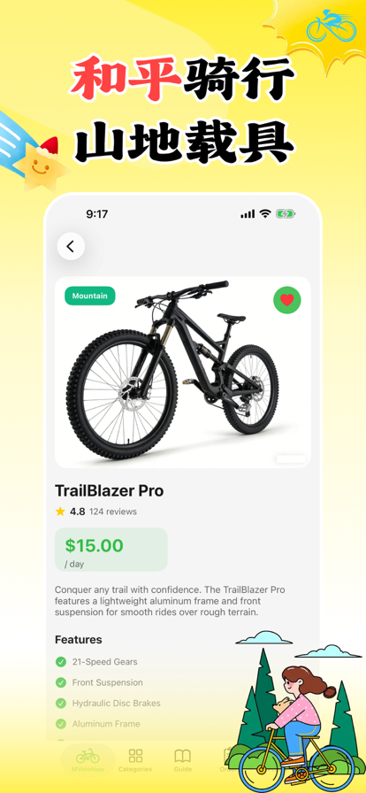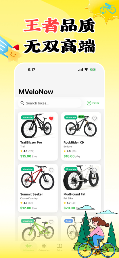 Discover the ultimate bike rental experience with MVeloNow — your pocket-sized companion for finding and renting the perfect bicycle. Browse our diverse fleet of many premium bikes across 8 categories. Whether you're a thrill-seeking mountain biker, a speed-focused road cyclist, a casual cruiser, or looking for something for the whole family, we've got you covered. Download MVeloNow today and find your perfect ride!