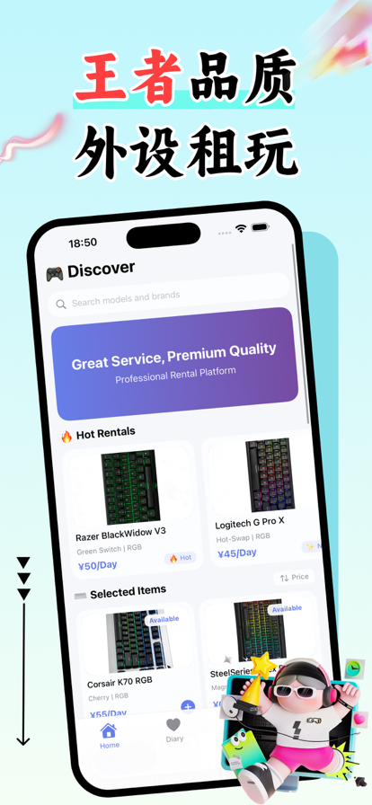 A gaming keyboard rental and experience platform designed specifically for esports players. We understand that in intense gaming competitions, faster response times and superior key feedback are key to victory. Instead of spending exorbitant prices on blindly purchasing, enjoy the experience by renting at a high cost-performance ratio through our platform. Our app helps you easily manage all your esports equipment rental orders and borrowing records, and even records the story of how each keyboard accompanied you on your journey to higher ranks. We are committed to lowering the barrier for hardcore gamers to try top-tier gaming peripherals, helping you achieve victory in the Rift and on the battlefield!