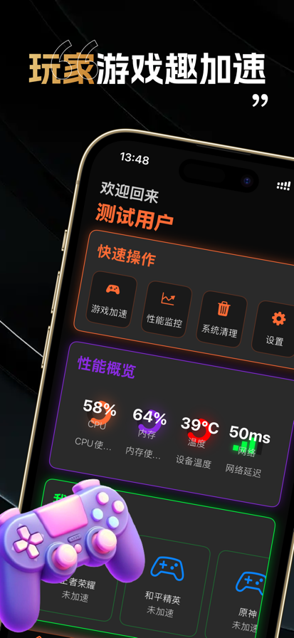 专为设备量身打造的专业游戏优化应用,用智能算法与前沿系统优化技术,给你全方位的游戏体验升级。 核心功能拉满:智能游戏加速让帧率稳定提升 30%,团战、跑图再也不卡顿;实时性能监控面板清晰展示 CPU 负载、内存占用和设备温度,硬件状态一手掌握;一键系统清理快速释放存储空间,告别因内存不足导致的闪退;个性化设置可精准适配不同游戏需求,从轻度休闲到重度竞技都能调至最佳状态;更有隐私安全保护,所有数据本地存储,杜绝信息泄露风险。 为什么选它?专业级优化算法直击系统特性,操作界面简洁直观,全程零广告干扰。团队持续迭代技术,适配新机型与热门游戏。让每一帧都流畅丝滑,每一次开黑都沉浸尽兴 —— 立即下载游能速上,解锁设备的游戏性能上限!