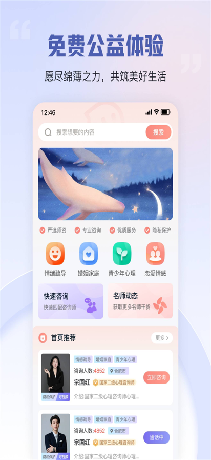 白海豚——让生活更美好 在快节奏的现代生活中,压力、焦虑、迷茫常常如影随形,心灵的疲惫亟需温柔抚慰。白海豚应运而生,以“用温暖与专业,让生活更美好”为使命,致力于为每一位用户提供便捷、高效且极具性价比的心理咨询服务,点亮心灵的明灯。 超低价暖心守护,人人都能负担的心灵关怀 无需担心高昂的咨询费用成为你寻求帮助的阻碍,白海豚打破行业高价壁垒,推出亲民至极的价格体系,让专业心理支持成为大众触手可及的日常需求,让每一个渴望被理解、被治愈的心灵都能轻松获得帮助 。 免费公益体验,零门槛开启心灵之旅 为了让更多人能够无负担地感受心理咨询的力量,我们特别提供免费20分钟公益咨询体验。无需任何费用,无需复杂流程,只要你需要,点击即可开启与专业心理咨询师的对话。在这里,你可以尽情倾诉内心的困惑、烦恼、喜悦与悲伤,无需担忧被评判,因为我们始终以尊重、理解和包容的态度,倾听你的每一句话。 多元专业咨询师团队,精准匹配专属陪伴 我们深知,每个人都是独一无二的个体,心理需求也各不相同。因此,白海豚汇聚了来自不同领域、拥有多元风格和专业背景的资深心理咨询师。无论是学业压力、职场困扰、情感纠葛,还是个人成长中的迷茫,都能在这里找到最契合的倾听者与引路人。在前期的咨询体验中,我们会为你安排不同风格的咨询师,让你充分感受不同的咨询风格,直到遇见那个让你敞开心扉、倍感信任的咨询师,让持续的关怀与支持助力你走出心灵困境。 便捷操作,随时随地守护心灵 白海豚操作简单便捷,界面简洁友好,无论你是手机小白还是科技达人,都能轻松上手。无论是清晨醒来时的迷茫,还是深夜难眠时的焦虑,打开软件,即刻就能与专业咨询师取得联系,让温暖与力量穿越时空,陪伴在你身边。同时,我们高度重视用户隐私保护,采用最先进的数据加密技术,确保你的每一次倾诉、每一个秘密都得到最安全的守护 。 生活或许充满挑战,但你从不孤单。白海豚愿做你心灵的港湾,用专业与温暖,陪你驱散阴霾,拥抱美好。