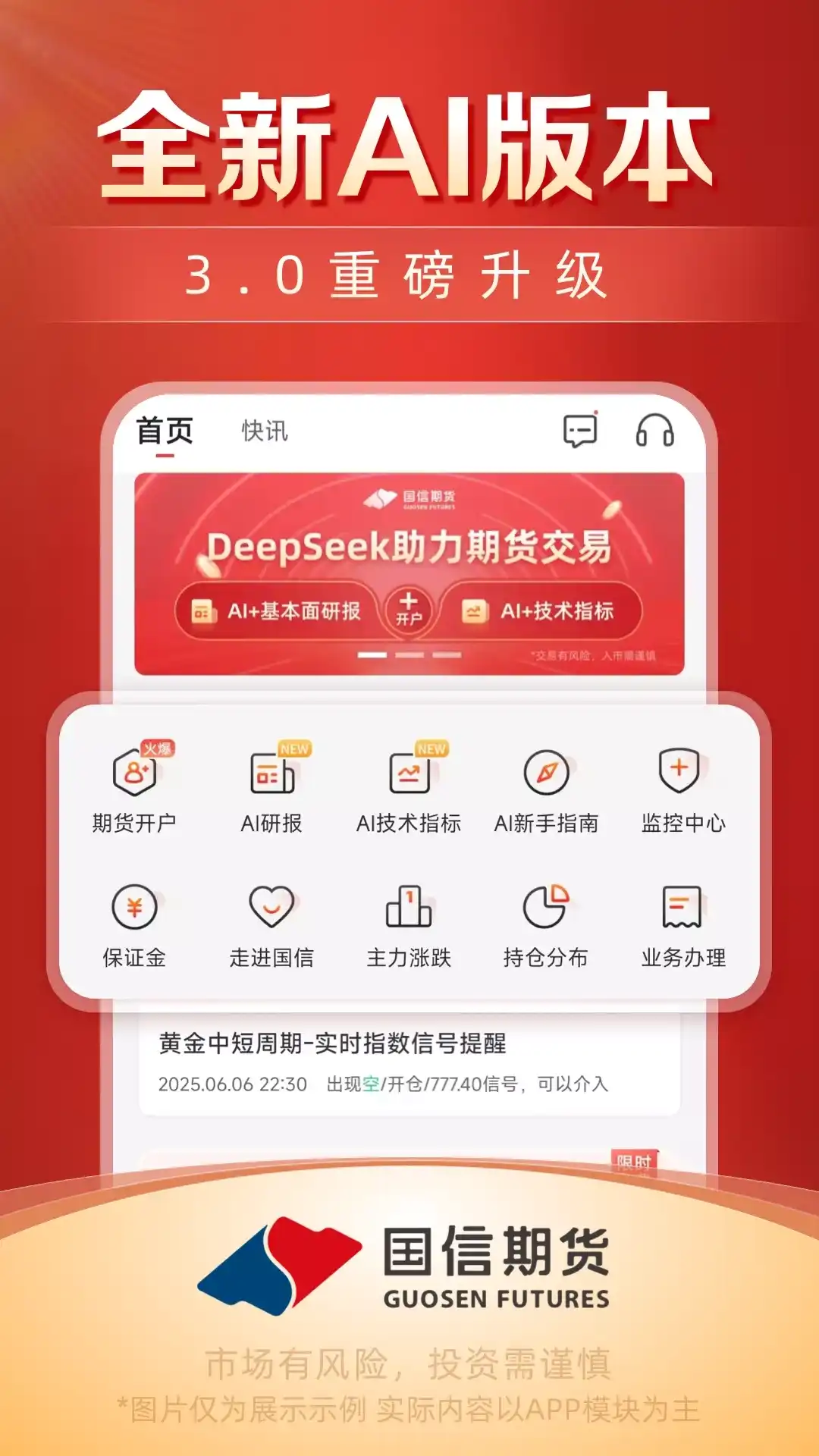 国信期货开户交易是国信期货旗下的官方软件,是一款集期货开户、期货交易、期货行情、期货资讯、AI研报、订阅策略、组合榜单、一对一客服等多功能于一体的一站式理财投资软件,软件内可交易白银、原油、贵金属、股指期货、期权、农产品、有色金属、黑色品种、能源化工等全品种期货,为交易者提供安全、便捷、快速的期货投资服务。 【公司背景】国信期货有限责任公司是国信证券股份有限公司(股票代码:002736)的全资子公司,注册地上海,是中国期货业协会、上海期货交易所理事单位,具有中国金融期货交易所交易结算会员资格,上海期货交易所、大连商品交易所、郑州商品交易所、上海国际能源交易中心会员资格。国信期货坚持“以信为本,点石成金”的服务理念,为交易者提供专业的期货研究、投资咨询、资产管理等全方位、高附加值的衍生品服务。 期货开户:便捷轻松,零资金、无门槛快速开户。 期货行情:实时精准的国内外期货行情,品种全覆盖。 期货交易:手机在线交易,方便快捷。 期货资讯:让用户了解更多的期货资讯动态。 AI研报:帮助用户快速解读品种研报。 策略超市:量化策略模型供用户订阅。 组合榜单:用户可以根据订阅的策略自行组合。