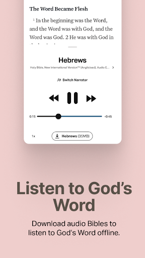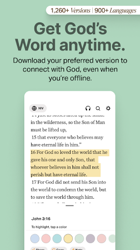 要过以上帝和他的话语为中心的生活,真的很不容易。 这是为何免费的 YouVersion 圣经软件会为你提供各样工具,来帮助你每天寻求上帝的心意: 收听音频圣经、创建祷告事项、和朋友们查经、探索逾2000个圣经译本,等等。 全球四亿多部设备现已安装了圣经软件啦!<br><br>连线时访问所有内容,或下载特定译本供离线使用; 创建祷告清单,以便有目的性地祷告; 添加高亮显示、书签、徽章和笔记,个性化你的圣经。<br><br>与朋友一起阅读、查考和分享; 围绕信仰展开坦诚的对话; 与朋友在主里一起成长,一同分享你的发现; 创建可以分享的经文图片,将经文添加到你的照片上。<br><br>养成每天祷告的习惯<br>- 使用祷告卡来追踪你在圣经软件里的祷告事项;<br>- 轻松打理祷告清单;<br>- 选择将你的祷告事项保密,或与朋友分享;<br>- 祷告蒙垂听时,与你在圣经软件里的朋友同欢庆。<br><br>个性化你的免费圣经<br>- 经文图:用经文制作漂亮的图片;<br>- 高亮显示:选择自定义颜色;<br>- 书签:背诵和查找你最喜爱的经节;<br>- 笔记:“私人”——仅供自己查看,“公开”——与朋友分享;<br>- 与朋友分享经文:社交媒体、电邮、短信等;<br>- 云同步:有了免费的 YouVersion 账户,就能在任何受支持的设备上查看笔记、高亮显示、书签和读经计划;<br>- 轻松阅读:调整字体、字号和间距,甚至在低亮度模式下阅读。<br><br>每天读经<br>- 以不下65种语言体验圣经软件;<br>- 在1300多种语言的2000多种圣经译本间自如切换;<br>- 受欢迎的简体中文译本:《新标点和合本》(CUNPSS)、《和合本修订版》(RCUVSS)、《当代译本修订版》(CCB)、《新译本》(CNVS)、《中文标准译本》(CSBS)等;<br>- 离线圣经:没有网络连接依然可以读经(仅限特定译本);<br>- 音频圣经:特定译本有音频朗诵(不能下载)。<br>- 今日经文小组件。<br><br>研读上帝的话语<br>- 读经计划:数以千计的灵修和读经计划;<br>- 阅读部分经文或查考特定主题;<br>- 一年内通读圣经;<br>- 视频:观看电影《耶稣》。<br><br>与朋友连接<br>- 在圣经软件里,以圣经作为你和朋友交流的中心;<br>- 主页:查看你的朋友给哪些经文添加了书签或高亮显示;<br>- 评论:与一同读经的朋友交换心得;<br>- 分享看法,提出问题。<br><br>你在 ANDROID 上的隐私<br>圣经软件请求访问你的通话,以便在你收听圣经时有电话进来能暂停音频播放。<br>圣经软件请求读写SD卡的权限,因为那是你所选择要下载的离线译本的存储之处。 <br>圣经软件请求访问你的账户列表,以便更顺畅地完成注册过程。<br>如果你选择使用已经与你的设备关联的账户来注册,你就可以跳过验证的步骤。<br>我们不会出售你提供给我们的任何个人信息,也不会在未经你同意的情况下分享你的隐私信息。<br>你可以通过 http://youversion.com/privacy 了解我们的隐私政策。<br>位置:我们有成千上万的现场活动,YouVersion 的【互动】功能可以通过你的位置,帮助你找到附近正在进行的活动。<br>联系人: 我们将访问你的联系人信息,使你更容易与朋友分享圣经软件。 <br><br>与 YouVersion 连接<br>- 直接在圣经软件中联系支持人员;<br>- 加入 Instagram、Facebook、Twitter、Pinterest 和抖音上的 @youversion 社群;<br>- 通过 blog.youversion.com/zh-hans/ 追踪最新消息;<br>- 使用圣经软件的网页版 bible.com<br><br>现在就下载全球最棒的圣经软件,体验与享受深受亿万用户喜爱的读经方式!<br><br>超过1000个圣经译本:<br>圣经当代译本修订版 (CCB)<br>新译本 (CNVS)<br>中文标准译本 (CSBS)<br>新标点和合本, 神版 (CUNPSS-神)<br>和合本修订版 (RCUVSS)<br><br>语音圣经有:<br>圣经当代译本修订版 (CCB)<br>新译本 (CNVS)<br>中文标准译本 (CSBS)<br>新标点和合本, 上帝版 (CUNPSS-上帝)<br>和合本修订版 (RCUVSS)