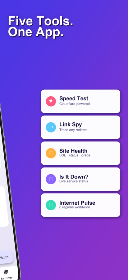 PulseWatch 把混乱的网络变成一块平静的仪表盘。追踪任意网页的变化、测试网速、检查可疑链接、评估站点健康、监控你依赖的服务的实时状态 — 全部在一个简洁优雅的主屏幕里完成。 30 秒监控任意网站 选择页面、告诉我们要追踪什么,AI 选择器会自动搞定其余的一切。无需代码、无需 CSS、无需折腾。适合降价提醒、补货提醒、内容更新、新职位、抽奖结果、考试成绩,以及任何你本来要手动刷新的东西。 网速测试 Cloudflare 提供的下载、上传与真实 ping。精美的动画仪表、完整的历史记录、准确的结果 — 随时随地,任何网络。 链接侦察 — 点之前就知道 粘贴任何短链接或可疑链接,立刻看到它指向哪里。跟踪每一次跳转、检查 SSL 证书、识别钓鱼风险 — 点击前先做决定。适合电子邮件、短信链接、二维码以及奇怪的私信。 几秒完成站点体检 几秒内获得任意 URL 的完整报告:加载时间、HTTP 状态、SSL 详情、安全头部以及可信赖的综合评分。专为开发者、设计师、SEO 与站长打造。 是否宕机? GitHub、AWS、Cloudflare、Vercel、OpenAI、Discord、Slack 等数十个服务的实时状态 — 包括你自己的自定义服务。出问题的瞬间就知道,免得先去 debug 自己的代码。 全球脉搏 — 全球视角 覆盖全球 8 个地区的互联网健康全景。一发生故障立即捕捉,立刻判断是只有你、你的国家,还是全世界。 像素级变化检测 带 diff 和截图的完整变更历史、百分比降价、智能去重以及实时推送通知。支持 Apple Watch 与主屏幕小组件。 PulseWatch 为所有人打造 — 追折扣的购物达人、监控自家技术栈的开发者、关注依赖的 SRE、追踪竞争对手的市场人员、关注公共记录的记者,以及单纯好奇的你。免费开始。需要时再升级 Pro。无追踪、无广告、无废话。 今天就下载 PulseWatch,让网络主动来找你。