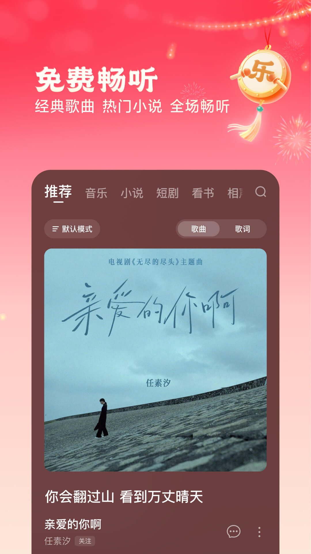 数亿用户推荐,和有趣的人一起听歌、互动、看评论!<br>网易云音乐是当下受年轻用户喜爱的音乐平台之一,同时也是业内领先的音乐社区。在网易云音乐,不仅可以听到海量正版音乐,还能遇见和你同样热爱音乐的伙伴。用音乐连接彼此,用音乐传递美好力量。<br>【海量曲库】<br>收录华语/欧美/日韩等众多语种歌曲,涵盖电音/说唱/摇滚/ACG/古风/古典等超全音乐种类。无论是热门歌手,还是小众音乐人,你都可以在这里找到。<br>【个性推荐】<br>超准智能算法比你更懂你,根据你的日常听歌喜好,将自动推荐给你感兴趣的歌曲。<br>【有声剧场】<br>快速充电的人生书库、精彩纷呈的推理悬疑故事、脑洞搞笑的热门小说、甜到停不下来的热门广播剧,超级还原的游戏原著,好听的小说都在这。<br>【精品播客】<br>音乐推荐、热门翻唱、情感树洞、真实故事……你想听的这里都有;解压、充电、助眠……满足你的所有需求;超千万声音库,给你7*24小时的耳边陪伴。<br>【品质歌单】<br>超31亿歌单库,邀你一起定制跑步、学习、工作、聚会等全场景音乐歌单。<br>【精彩乐评】<br>看了就停不下来,全网热闹歌曲评论区。真实情感故事、连载小说、硬核科普、趣味段子、文学金句、流行玩梗,你想得到想不到的乐评都在这了。<br>【趣味社区】<br>在云村,你不仅可以听音乐,还可以看音乐、聊音乐、玩音乐。Mlog/一起听/动态/歌房等众多创新功能全方位满足你的使用体验。<br><br>新内容&功能<br>【版权回归】SM娱乐公司、时代峰峻、YG娱乐公司等版权歌曲回归云村。<br>【硬地原创音乐榜】甄选值得聆听的原创佳作,带你在炽热的旋律中自由起舞~<br>【村民广场】全新上线,这里是云村人的情感、音乐、生活交流地!<br>【歌单导入】支持本地导入/图片导入,歌单导入提升成功率至90%左右<br>【云随机播放】行业首创用户可自定义的随机模式,支持调节随机偏好,用户口碑好评<br>【音乐百科】展现歌曲的周边信息,包含曲风、语种、影综、奖项等,可点击探索更多内容