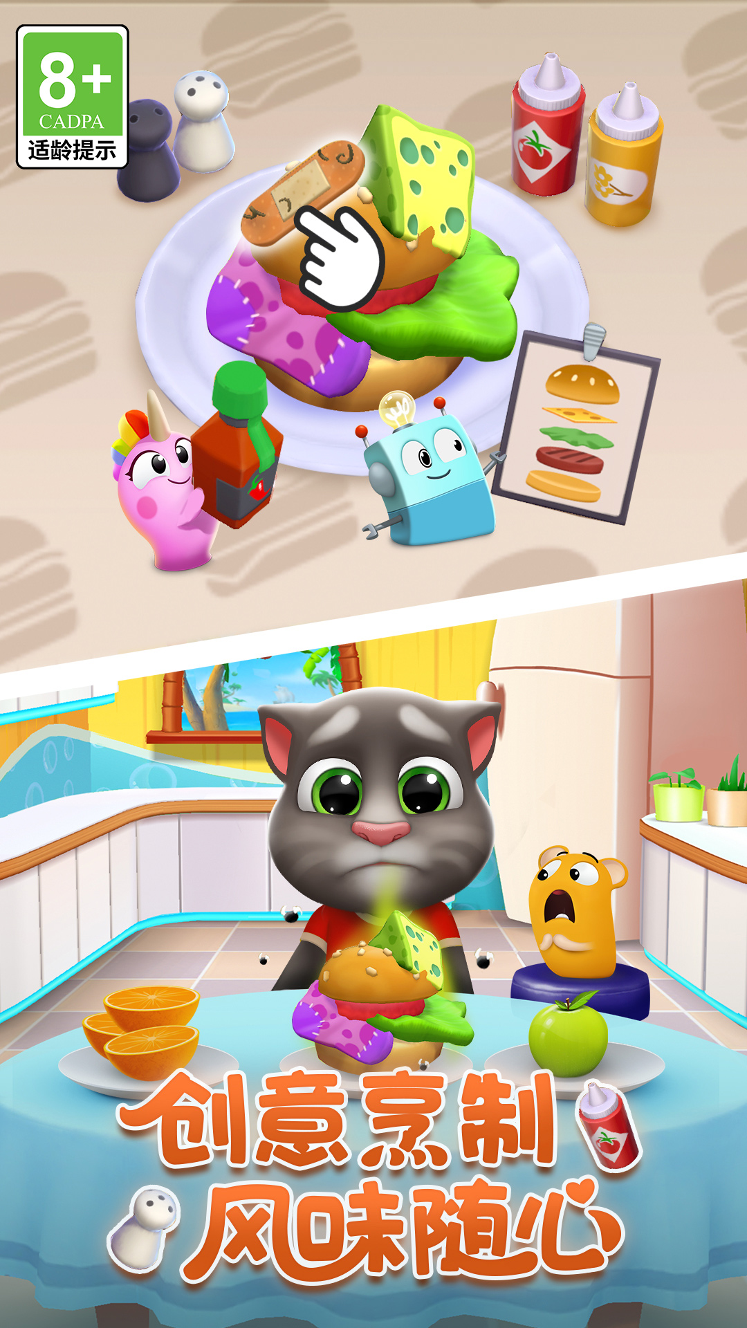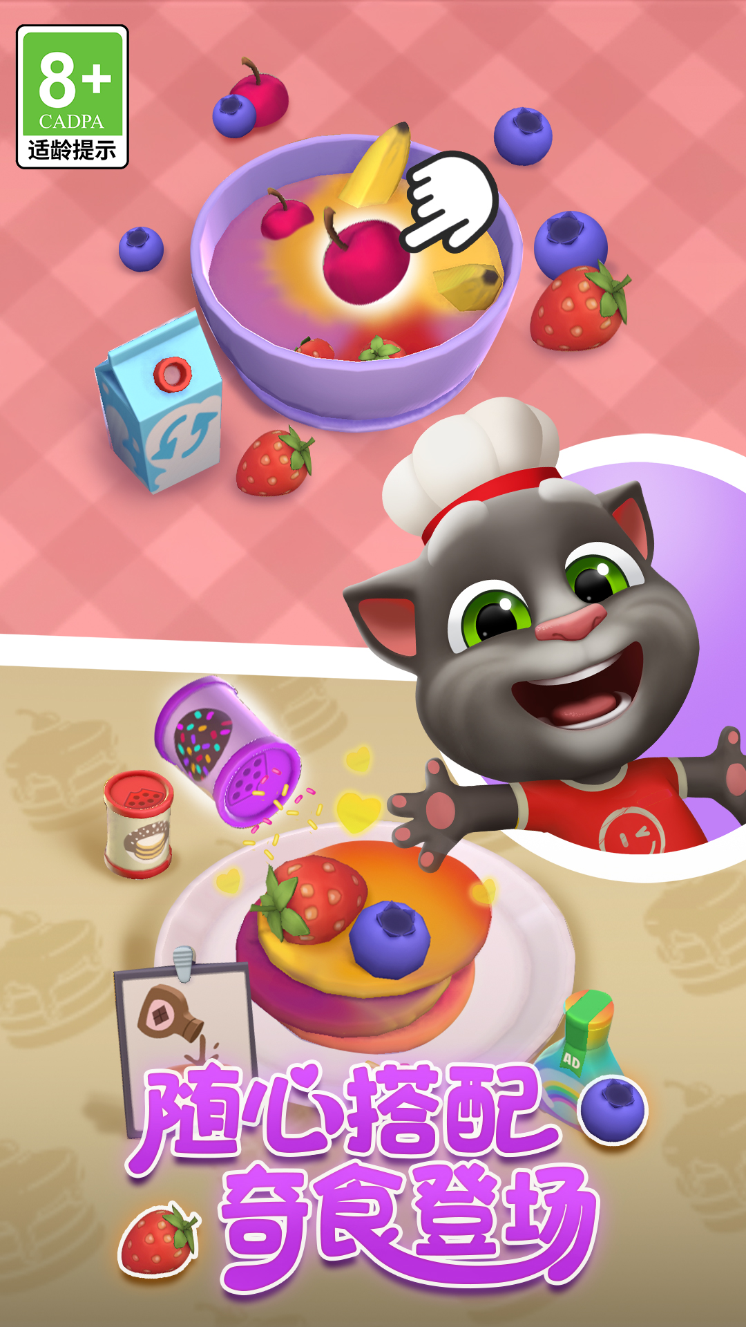 玩法焕新,欢乐启程!《我的汤姆猫2》全新升级来袭,多样玩法同步解锁,每一份惊喜都等你开启,快来沉浸式体验全新趣味互动!<br>-- 全新玩法亮点 --<br>【独创烹饪,解锁美味】全新的烹饪功能上线!发挥你的创意,烹饪汉堡和煎饼,亲手制作独属于你的佳肴,解锁舌尖上的欢乐体验!<br><br>【后院升级,畅玩无忧】后院迎来重大升级!更宽广的活动空间,更多趣味互动玩法,让你和家族伙伴拥有足够空间,尽情享受休闲时光。<br><br>【太空竞技,探索未知】飞机建造器和天空竞赛重大升级!4款新的太空主题天空竞赛轨道全新上线,搭配全新的生物和太空主题飞机建造玩法,带你探索太空竞技的无限乐趣!<br><br>【新奇玩法,焕新体验】全新的牙刷玩法重磅来袭!简单操作,趣味十足,解锁不一样的互动体验,为你的欢乐时光再添新意!<br><br>超级明星虚拟猫咪将踏上终极宠物冒险之旅,有了你,这将比以往任何时候都更有趣!你最喜爱的有趣朋友已经准备好用他的新服装、惊人技能和特殊功能让你大开眼界。<br><br>你能做什么:<br><br>- 学习新技能:教汤姆猫一些很酷的技巧和技能,比如打鼓、篮球和拳击。他将成为最有天赋的猫咪!<br><br>- 品尝最新零食:发现并喂汤姆猫各种美味有趣的零售。从冰淇淋到寿司,汤姆猫都爱吃!你敢给他吃辣椒吗?<br><br>- 保持清洁:通过洗澡和刷牙等有趣的活动,帮助汤姆猫保持清爽干净,顶呱呱!<br><br>- 上厕所:没错,汤姆猫也需要上厕所,而且这很好玩!帮他一把,让他舒服点。<br><br>- 探索新场景:与汤姆猫一起前往激动人心的新地方,发现隐藏的惊喜。使用特殊的飞行特别货币飞往不同的岛屿!<br><br>- 收集衣服、家具和难忘的特别时刻:用疯狂的服饰定制汤姆猫的造型,用时髦的家具装饰他的家。<br><br>- 扭蛋好礼:完成不同的活动,解锁超棒的奖励和惊喜。获得酷炫服饰、美味零食等!<br><br><br>更多有趣活动:<br><br>- 玩巨型秋千和蹦床:让汤姆猫荡起高高的秋千,跳来跳去,笑个不停。<br><br>- 制作奶昔:调制美味古怪的奶昔给汤姆猫享用。<br><br>- 治愈磕磕碰碰:当汤姆猫受伤时,照顾好他,确保他能马上恢复成可以玩耍的状态。<br><br>- 迷你游戏和谜题:通过有趣的迷你游戏和谜题挑战自我,数小时沉醉其中。<br><br>- 玩个不停:看会说话的汤姆猫的后院如何变幻成糖果王国、海盗岛、海底家园等神奇世界,和汤姆猫以及他的宠物朋友们一起沉浸在无尽的欢乐中。<br><br>这款虚拟宠物游戏充满了冒险、欢笑和难忘的时刻!一定要全部捕捉下来!