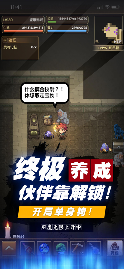 游戏介绍: ● 鸡鸣灯灭不摸金,盗墓冒险需小心! ● Rougelike免费角色扮演单机小游戏,唯美二次元风格,完整RPG剧情主线,大量装备、随机神装都可以获得。玩法丰富,操作简单,喜欢刷装备的玩家只需要点点点,千万不可错过哦! 游戏特色: ● Rougelike随机迷宫、随机怪物、随机装备掉落,体验爆装的乐趣。 ● 所有装备、材料、道具都可以通过刷怪物掉落。 ● 单机游戏特有的服务器存档机制,读出神装不是问题,换手机不是问题。 ● RPG主线,与少年少女一起体验盗墓冒险之旅。 ● 轮回后所有伙伴都可以通过主线和挑战解锁获得。 ● 主线、藏宝图、BOSS试炼、无极洞眼、幽冥十三陵等、每日摸金、摸金活动,大量玩法大量BOSS可以挑战。