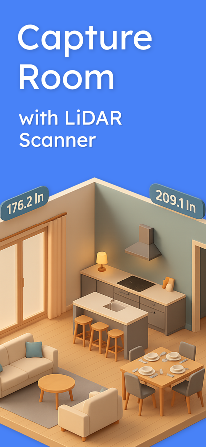 Room Planner: LiDAR Scanner 3D – Fast & Accurate Room & Object Scanning Room Planner: LiDAR Scanner 3D is a powerful yet easy-to-use app for measuring spaces, scanning objects, and creating 3D models or room plans with LiDAR technology. Whether you're redesigning your home, furnishing a space, or capturing dimensions on the go, this app helps you do it quickly and precisely. Key Features: • 3D Room Plan – Generate accurate 3D layouts with real-world dimensions • Object Scan – Capture objects and create detailed 3D models instantly • Ruler & Area – Measure distances and calculate surface areas using AR • Export – Save your scans in formats like PDF or USDZ for easy sharing • Measurement History – View and manage your saved scans anytime • Clean Interface – Designed for clarity, speed, and simplicity Ideal for home projects, interior design, and 3D modeling. Room Planner: LiDAR Scanner 3D – Your essential tool for fast, precise, and portable 3D scanning. 3D scanning mode is available only on devices with a LiDAR sensor, such as iPhone 12 Pro, iPad Pro, and newer Pro or Pro Max models. Privacy Policy: https://gainful-link-3dd.notion.site/Privacy-Policy-285051cfdd8a80cfa62ac3ef6c7681a5 Terms of Use: https://gainful-link-3dd.notion.site/Terms-of-Service-285051cfdd8a80458954c47a66929866