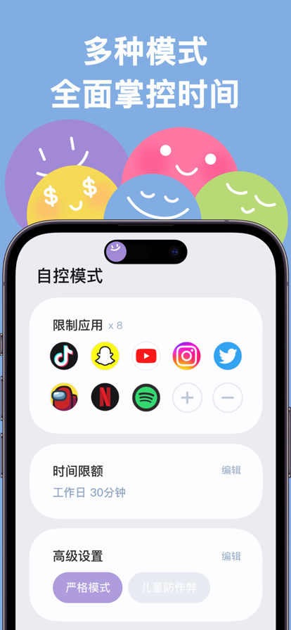 工作和学习时总是分心?每晚不停刷视频影响睡眠?保持专注总是被打断?来吧~'不做手机控' 你的自律帮手~全方面掌控屏幕使用时间!还有灵动岛和可爱的组件哦~ 亮点: + 专注/睡眠模式,仅保留必要的App可使用,其余全部锁定!帮助保持专注,或者睡个好觉:) + 自控模式,限制刷短视频时间,拒绝沉迷短视频! + 用功模式,在特定时间只允许打开学习或者必要的App~ + 隐私模式,手机出借?隐藏银行等重要App,资源库搜索也找不到哦! + 防剁手模式,锁定应用内购买,避免游戏氪金! + 成就系统,可爱圆仔帮你实现21天自律养成! + 还支持灵动岛,桌面小组件和锁屏小组件~ '不做手机控'帮助您和您的家人保持工作效率,在技术与现实生活之间保持健康的平衡。不用担心,数据绝对安全,您的数据只会存储在您的手机上,快下载试试看吧~