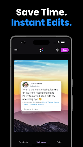 用 NexSnap 秒变专业!📸✨<br><br>截图看起来有点平淡?NexSnap 是终极截图设计工具,瞬间将原始图片变成精美、可分享的佳作。无论你是内容创作者、开发者、营销人员,还是喜欢在社交媒体分享,NexSnap 都能帮你脱颖而出,获得更多互动。<br><br>别再在复杂的设计软件里耗费数小时。用 NexSnap,几下点击就能得到精美、专业的成果!<br><br>🌟 核心优势<br>• 省时:几秒钟做出专业级样机,专注创作,而非编辑。<br>• 提升互动:醒目、多彩的截图在 Twitter/X、Instagram、LinkedIn 和博客上更能吸引眼球。<br>• 提升品牌:干净、统一、美观的视觉让你的作品和演示更显高级。<br><br>🎨 强大功能<br>精美背景<br>从鲜艳渐变、精美壁纸或纯色中挑选,完美框住你的截图。<br><br>一键风格预设<br>即时应用专业样机风格,如 Clean、Stacked,或将图片放入优雅的浏览器窗口(深色/浅色),呈现真实网页效果。<br><br>完全自定义<br>全面掌控设计:<br>• 调整内边距和边距,完美框住图片。<br>• 圆角截图,呈现现代、精致感。<br>• 用可自定义 3D 阴影增加层次(可调模糊和强度)。<br>• 自定义边框粗细和颜色。<br><br>智能标注工具<br>直接在图片上添加说明,清晰传达信息!使用文字、箭头、高亮框和步骤标记,精准引导观众视线。<br><br>AI 增强(Pro)<br>让 NexSnap 的智能 AI 处理分析并自动优化截图,获得最佳效果。<br><br>完美比例<br>快速裁剪或适配预设宽高比,适用于各类平台(Instagram 帖子、Twitter、Stories、演示文稿)。<br><br>无缝导出<br>即时将高清图片导出到相册,或直接分享到常用应用。<br><br>🚀 适合谁?<br>• 社交媒体运营与网红,打造能让人停下滑动的帖子。<br>• 独立开发者,展示应用功能与 UI 设计。<br>• 作者与博主,为文章配上精美配图。<br>• 职场人士,提升幻灯片与演示质量。<br><br>升级 Pro,享受无限创作自由!<br>解锁全部高级风格、独家背景渐变、无限导出并去除水印,让截图更上一层楼。<br><br>立即下载 NexSnap,开始制作人们真正想看的截图!<br>了解更多:https://nexsnap.app<br>隐私政策:https://nexsnap.app/privacy<br>使用条款:https://nexsnap.app/terms