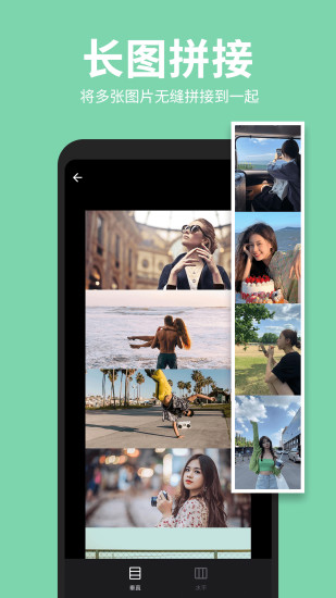 这是一款功能全面的拼图修图app,操作简单便捷,超多精品素材,贴纸、边框,背景,涂鸦笔,抠图……你意想不到的精美效果,在这里都能轻松得到满足。 实用的照片拼图、长图拼接、照片编辑、海报制作功能,制作让你满意的拼图、海报; ===功能简介=== 【照片拼图】包含模板拼图和自由拼图两种模式,超多模板选择,一键高清导出; 【拼长图】最多支持15张大图无缝拼接,支持垂直,水平方向; 【批量修图】最多支持10张照片批量编辑,让你事半功倍; 【图片美化】照片美化、照片编辑、裁剪、滤镜调色、贴纸、涂鸦等功能; 【滤镜调色】各色滤镜组和专业调色工具,支持亮度、色调、色温、饱和度、锐化等细节精修 【创意海报】一键套用ins海报模板,各种风格应有尽有。
