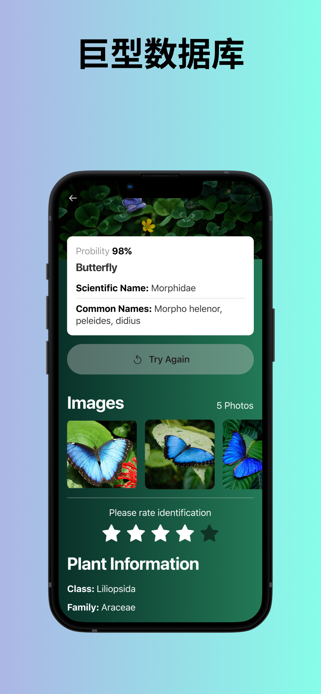 智能拍照识别 非常适合植物爱好者、孩子家长、中小学教师、植物相关专业学生及教师、园林工作者、花艺爱好者、旅游爱好者、摄影爱好者、文艺小青年以及任何热爱生活的人 【拍照识物,精准识别】随手一拍就知道 【百科知识,详细资料】随身小百科,生活小助手 【花草树木】识植物,满足您的求知欲 【动物识别】一拍识别宠物,包含猫咪、犬类、爬行动物、小动物、水族类等宠物 高级订阅: •确认购买时,将向iTunes帐户收取费用 •订阅会自动续订,除非在当前期间结束前至少24小时关闭自动续订 •帐户将在当前期间结束前24小时内收取续订费用,并确定续订费用 •订阅可以由用户管理,并且可以在购买后转到用户的帐户设置来关闭自动续订 •如果提供免费试用期,任何未使用的部分将在用户购买该出版物的订阅时被没收(如果适用) 使用条款:https://www.freeprivacypolicy.com/live/e2f48935-6088-4953-bae0-97774bc0ebd8 隐私政策:https://www.freeprivacypolicy.com/live/37195a2b-285f-4a1c-9462-cc328d1fe93f