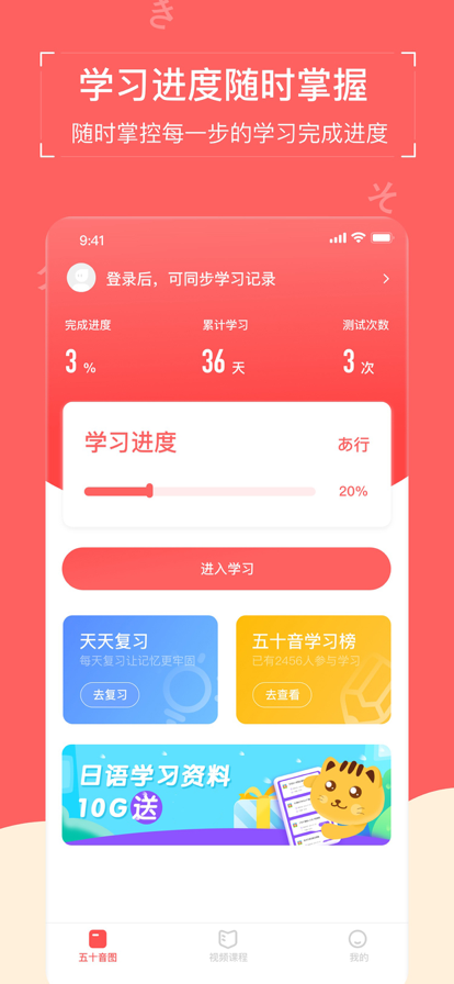 五十音图AI课程,专为日语初学者量身打造,通过趣味闯关模式,特邀真人声优录制讲解视频,AI发音评测,定期开设免费日语教学公开课! --功能介绍-- 【五十音学习】 -真人声优发音:口音纯正,模仿练习 -笔顺动画:每个假名都有笔顺动画 -联想记忆法:每个假名配有独特好记的联想技巧 -视频讲解:日语发音口型详解; 【五十音练习】 -AI发音评测:跟读模仿,AI评测得分; -真题测试:五十音海量题库,检验学习效果; 【日语公开课】 -互动日语公开课定期直播,老师会邀请观众上台交流; -内容涵盖日语学习、日本文化介绍,趣味主题课程; -所有课程免费观看 【一对一日语体验课】 -领取一次免费一对一日语体验课 -专属课程顾问进行上课指导