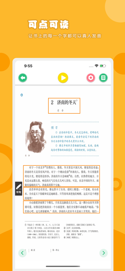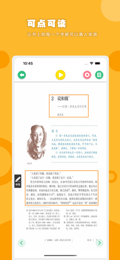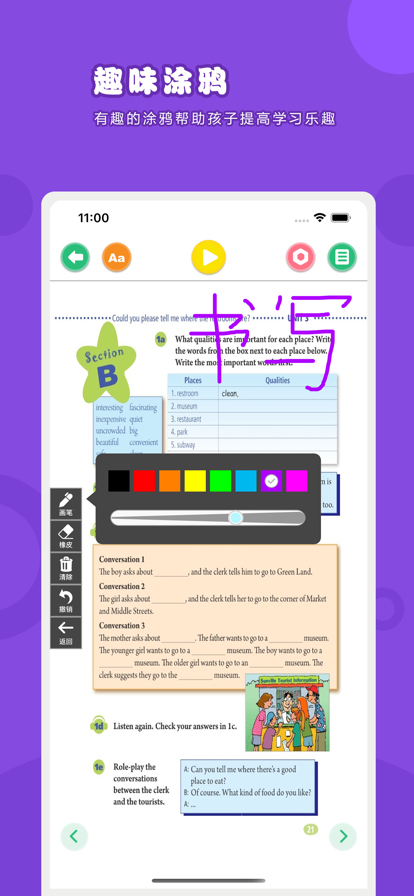 “乐学宝”点读机是一款可随身携带的智能电子点读课本。一点就通,一学就会,让孩子学习更轻松,让老师教得更省心,让爸妈变得更放心。 【产品特色】 1.教材同步-完全同步当前发行教材 2.原版品质-高清图片内容不伤眼 3.书写绘画-学习笔记两不误 4.读音清晰-准确播放课本内容 5.设计美观-用心做好每一个界面 【联系我们】 乐学宝客服QQ:3340941263 非常期待您的建议和反馈