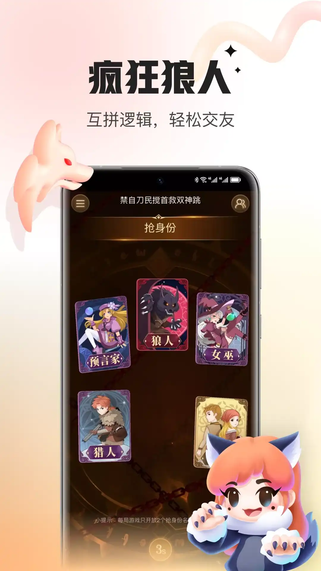 一亿年轻人都在玩的线上聚会交友平台,里边聚集了当下最流行的派对玩法,边玩边互动,给你沉浸式的交友体验! 【线上轰趴 认识新朋友】 「你演我猜」猜词默契大比拼,现在轮到你了,请开始你的表演! 「嗨歌抢唱」和爱唱歌的小伙伴们抢唱竞技,抢到你就嗨点唱! 「谁是卧底」综艺明星最爱玩的互动玩法,快来和伙伴们大战300回合吧! 「你画我猜」脑洞大比拼,考验默契与画功,涂鸦猜谜太开心! 【互动新玩法 邂逅心动的Ta】 「语音&聊天」聊天唱歌,各种欢乐不停歇! 「婚礼&小窝」教堂举办婚礼,好友见证爱情,记录每个甜蜜时刻! 「家族&师徒」收获满满友谊,超值福利免费领!还有家族互动、师徒任务! 「动态&广场」好看的小哥哥小姐姐都在这里,关注兴趣话题分享精彩瞬间! 在会玩,总有一群有趣又温暖的人在等你一起玩!