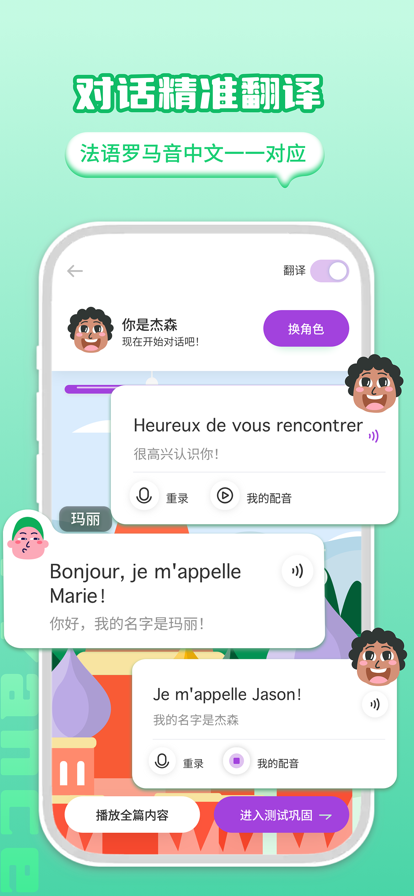 **欢迎来到我们的法语学习APP!** 由拥有30年教学经验的AAA法语学校资深教师团队倾力打造,我们为您提供全面而专业的法语学习体验。无论您是法语初学者,还是希望进一步提升的学习者,我们都为您提供量身定制的内容,让您从零基础到高级水平都能轻松掌握法语。 **我们的特色包括:** ◆ **0到B1学习内容**:全面覆盖法语的基础到中级知识,适合初学者和进阶学习者。内容包括核心单词、语法点、常见表达等,并由经验丰富的教师团队精心设计,确保您的学习循序渐进。老师提供专业的视频讲解,帮助您理解每个知识点,并配有完整的电子教材,助您随时随地学习。 ◆ **法语自然拼读法**:帮助您准确读写法语单词,专业的教学方法确保您掌握发音规则。 ◆ **动词变位表**:涵盖1500+个动词及所有时态,配备专业练习,帮助您轻松掌握法语动词。 ◆ **33个常用法语口语主题**:提升您的实际会话能力,涵盖生活中的多种对话场景。 ◆ **游戏闯关学习**:通过轻松愉快的游戏,巩固法语语法、词汇、听力和口语等技能,学习更有趣。 ◆ **资深教师视频讲解**:深入解析法语知识点,确保您从基础到进阶都能清晰理解。 ◆ **试卷测评**:通过模拟考试检测学习效果,让您时刻了解自己的学习进展。 我们的课程以图文并茂、生动有趣的动漫形式呈现,支持单句句子随点随听、循环播放,确保您不会错漏任何内容。专业的视频讲解帮助您深刻理解课文,增强记忆。课程侧重日常沟通能力,涵盖多种日常对话场景,让您在实际对话中游刃有余。 **法语音标板块**包含43个音标及相近音标的对比,结合常用词汇示例,外教清晰录音与口型视频,帮助您轻松掌握发音。通过**录音模拟练习**,您可以与法语母语者的发音进行对比,进行无限次练习,直到您对自己的发音满意,帮助克服开口难题,掌握标准发音。 立即下载我们的APP,开启您的法语学习之旅!与AAA法语一起,轻松学习法语,乐趣无限!
