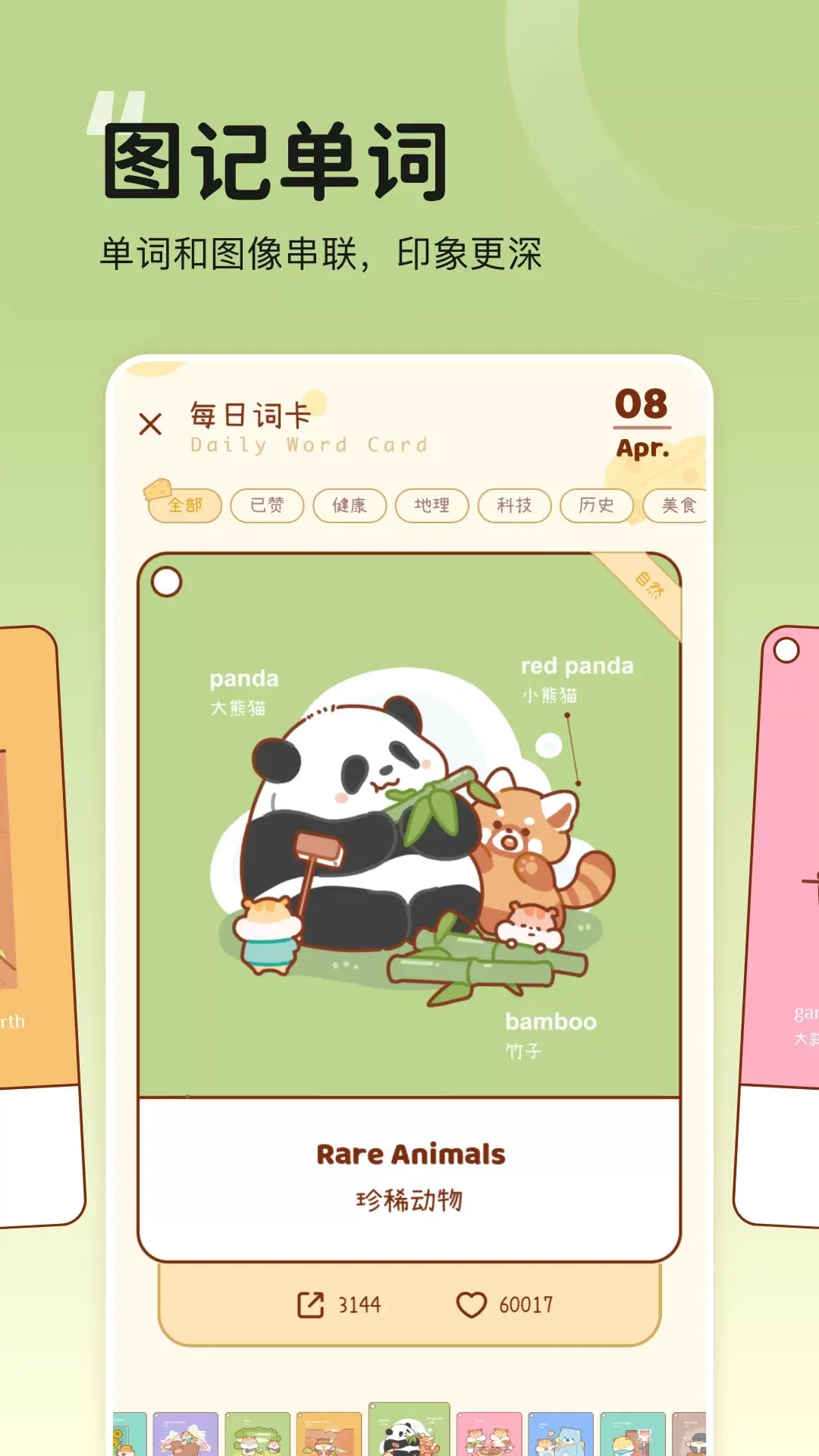 图样单词,世界记忆大师、最强大脑选手申一帆主导研发的高效背单词软件。 - 重新定义背单词软件 - 我们把记忆大师们才知道的记忆法,进行系统编码,融入每个单词中。用编码+联想+图像的方式,将单词记忆变得更加简单生动。基于遗忘曲线来制定的每日学习和复习,可以帮助你轻松记忆任何单词。 - 真正的图背单词 - 世界记忆大师共同研发的单词记忆编码,合理拆分+趣味联想+搞笑漫画。所有拆分和漫画均为原创。是图样单词独有的知识和图像版权。另外还有可爱的用户们留下的单词助记,在图样单词上背单词,真的可以过目不忘。 - T-Repetition 复习算法- 大数据跟踪记忆行为,精确的记录分析学习情况,结合艾宾浩斯遗忘曲线,智能安排单词复习计划,真正实现长期记忆单词。 - 词根词缀 - 认识单词的偏旁部首,让你对单词的理解更深刻。另外,有词根关系的单词都被整理成一棵棵词根树(思维导图),科学溯源,单词关系一目了然。 - 派生记忆 - 一个家族的单词都被整理在一起。利用前后缀拓展单词,科学记单词,让你的单词量蹭蹭暴涨。 - 单词详解 - 包含单词的实景照片意思图、搭配、真题例句、近义词、形近词、考频、单词coca排名。 欢迎大家交流背单词问题,陪伴是最长情的告白,图样单词期待与您一同成长。