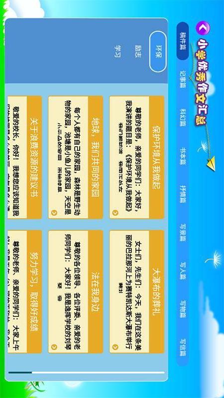 作文学习沉闷,小孩子提不起兴趣?抓不准技巧,作文学习事倍功半?小学满分作文就是你的作文提分利器。名师全方位、手把手教你写作,各类题材一应俱全,让学生快速掌握各类作文写作技巧。结合满分作文案例,更贴近实战考试,帮你分析作文满分技法。除此之外还包含全新上线的小学生范文精选,丰富的范文开拓思维,全面提升你的写作能力。小学满分作文是一款专门针对小学生语文写作的应用。