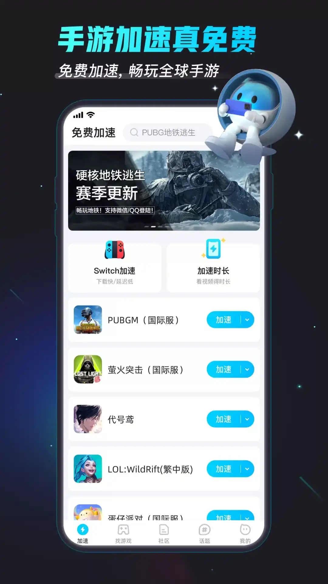 阿里巴巴灵犀互娱旗下的biubiu加速器是一款免费又好用的手游加速器,解决手游锁区、卡顿、掉线、加载慢等网络问题,陪你畅玩PUBGM等全球好游! 【全球手游免费加速】 无需会员真免费加速,全球游戏均可以免费加速,一起畅玩全球好游! 【海量游戏支持加速】 支持PUBGM、Roblox、和平精英、王者荣耀、Lost Light、暗区突围、Steam移动版、蛋仔派对、我的世界、原神、崩坏:星穹铁道、蔚蓝档案、使命召唤等上万款全球好游免费加速! 【稳定·极速·低延迟】 稳定低延迟,极速不掉线!biubiu拥有海量网络加速节点,自研专业的加速引擎,能自动选择最佳线路,享受“biu~”一般的游戏体验!同时支持超长时间游戏加速状态,持久稳定不掉线! 【多个区服无碍加速】 覆盖海外多个区服的加速节点,支持国际服、欧美服、亚服、日韩服、港澳台服、东南亚服等海外区服的手游加速,与海外玩家组队游戏,尊享无障碍、超低延迟游玩! 【定制加速本地添加】 觉得我们游戏库太小,没有您要加速的游戏?Nonono,我们可以加速更多,只要您在biubiu内“申请本地游戏加速”,不管是多小众的游戏,一定全力满足您的游玩及加速需求! 【支持手机加速Switch】 下载与联机都支持。手机加速,无需插件,随开随用;高速下载,专线支撑,无需等待;NAT优化,稳定联机,告别掉线 ————————————— 【联系我们 】 使用过程中有任何问题或建议,欢迎联系我们,我们会认真聆听每一条反馈! 官方群:837433455 官网:http://www.biubiu001.com/