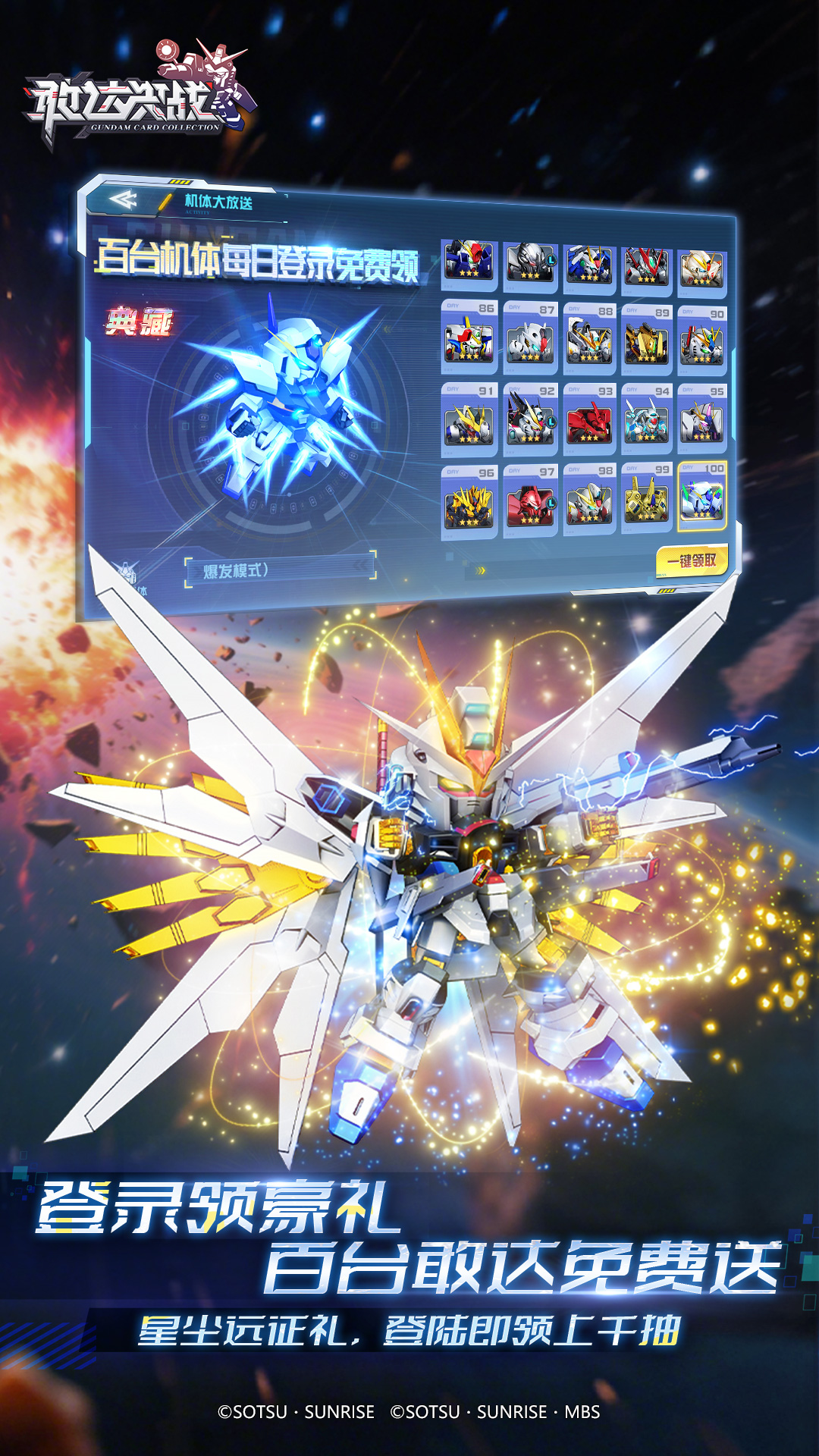 【游戏介绍】 《敢达决战》为中国大陆首款授权敢达题材手游。《机动战士敢达》《机动战士Z敢达》《机动战士敢达SEED》《机动战士敢达UC》等经典人气作品悉数登场。历代敢达机体机师大集结,武器数据中心、联合作战、机师挑战,多种策略玩法,高度还原一个真实而经典的敢达世界。每一台主战机体都有独特动作和酷炫大招,配合专属队长技合体技,弹指间逆转战场形势。升级进阶,机师培养,打造专属于你的机动战士部队。 《敢达决战》全新2.0版本开启新纪元!殖民卫星重建完毕,主城焕新,王牌指挥官准备作战!美术升级,界面优化,体验全新游戏世界,机体重塑,必杀技能效果燃炸全场, 联合作战开启,宇宙对抗,全局预览运筹帷幄!《敢达决战》2.0等你来探索。 【游戏特色】 •百台机体,经典人物悉数登场 •尊重原著,重温经典对话剧情 •超高质感,精美画面精细呈现 •触控释放,策略动作双重乐趣 •生存远征,漫漫征途精彩不断 •竞技排名,谁能赢取荣耀之证 •公会争霸,携手作战捍卫荣耀 •公会竞技,运筹帷幄决胜三路 •全新必杀,炫酷特效燃炸全场 •联合作战,全局预览运筹帷幄 •舰长出征,指挥战舰制衡全场 •情报系统,机体情报一手掌握