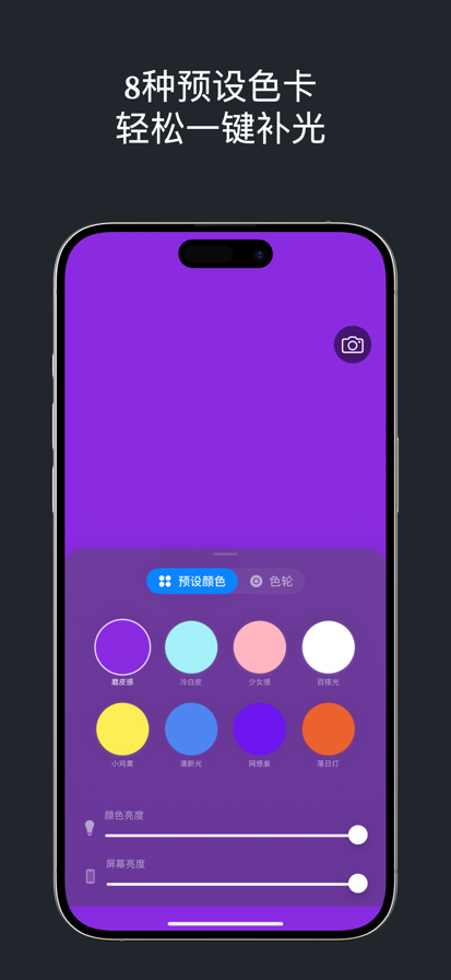 自拍补光灯是一款专为自拍爱好者打造的创新应用,旨在帮助用户在各种光线条件下拍出令人满意的自拍照。通过利用手机屏幕的亮度,应用可以为您的面部提供柔和、自然的光线,提升肤质,突出五官,达到美颜效果。 **主要功能:** - **自由调整补光颜色:** 应用提供了丰富的颜色调节选项,您可以根据环境光线和个人喜好,自由调整补光灯的颜色和亮度。无论是暖色调还是冷色调,都能轻松驾驭,找到最适合自己的光效。 - **预设光效模式:** 内置多款专业设计的光效,如自然光、暖阳光、清冷月光等,方便您一键切换,迅速找到理想的补光效果,省去繁琐的调整过程。 - **操作简单:** 用户界面简洁直观,无需复杂的设置。开启应用,选择光效,即可立即体验到补光带来的变化。即使是初次使用,也能快速上手。 - **使用便利:** 无需额外的硬件设备或外接灯光,利用手机自身的屏幕光即可实现专业级的补光效果。随时随地打开应用,满足您的自拍需求。 **应用亮点:** - **自然美颜:** 相比于滤镜,美颜补光能从源头改善照片质量,呈现更加真实、自然的美感。 - **节省电量:** 应用对屏幕亮度进行了优化调节,在提供足够光线的同时,尽可能降低电量消耗。 - **小巧实用:** 应用占用空间小,不会给您的手机带来负担,却能在关键时刻成为您的拍照利器。 无论是在光线不足的室内,还是在夜色朦胧的户外,自拍补光灯都能帮助您捕捉最美的自己。让每一张自拍都充满自信与魅力,快来下载体验吧! 订阅说明 1订阅价格与周期 您可以在APP订阅“年度会员”,订阅价格为¥6,订阅周期为一年。 您也可以在APP中直接购买永久会员,享终身会员权益,仅需¥12。 2,关于自动续订 自动续费服务声明: 1、付款:用户确认购买并付款后记入iTunes账户。 2、取消续订:如需取消续订,请在当前订阅到期24小时以前,手动在iTunes/Apple ID设置管理中关闭自动续订功能。 3、续订:苹果iTunes 账户会在到期前24小时内扣款,扣款成功后订阅周期顺延一年。 4、用户协议及隐私协议: 用户协议:https://sites.google.com/view/filllight-user 隐私协议:https://sites.google.com/view/filllight-privacy