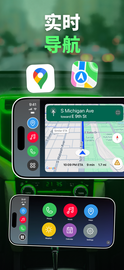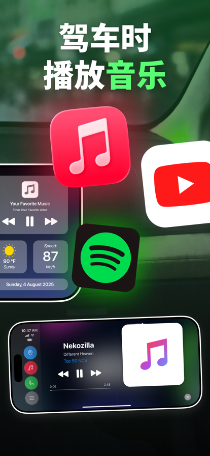 将手机变成智能车载中控台 Car Play Connect 可将您的 iPhone 或 iPad 转变为完整的驾驶助手,无需内置车机系统。实时导航、音乐控制、通话和天气更新集于一体,为任何车辆带来完美的中控体验,直接在您的设备上运行。 更智能地驾驶,只需使用这款功能全面的手机或平板应用。将设备固定好,即可开始旅程。 主要功能: - 专为 iPhone 和 iPad 设计的智能中控界面 - 语音导航和逐路指引 - 支持 Google 地图和 Apple 地图 - 实时交通信息与卫星视图 - 实时到达时间估算 - 完整的音乐控制:连接 Spotify、Apple Music 或播放 YouTube Music - 通过 Apple Music 播放本地音乐 - 快速访问联系人和拨打电话功能 - 驾驶中实时天气更新 为什么选择 Car Play Connect? - 完全独立运行 — 无需连接车机系统 - 兼容 iPhone 和 iPad - 简洁、无干扰的界面设计,保障驾驶安全 - 使用简单:打开应用,固定设备,开始驾驶 兼容品牌: 兼容 40 多个热门汽车品牌,包括福特、丰田、吉普、特斯拉、日产、讴歌、奥迪、宝马、别克、凯迪拉克、雪佛兰、克莱斯勒、道奇、GMC、现代、捷豹、路虎、雷克萨斯、林肯、梅赛德斯-奔驰、MINI、RAM、Rivian、大众和沃尔沃。 注意: Car Play Connect 不隶属于任何内置车机系统,也未与其集成。该应用完全在您的智能手机或平板上独立运行。 订阅详情 升级至高级版,即可享受无限地图、完整音乐播放器支持以及所有高级驾驶功能。除非在当前订阅期结束前至少 24 小时取消,否则订阅将自动续订。请在 App Store 设置中管理您的订阅。 支持:tapwise.net/support 隐私政策:tapwise.net/privacy 使用条款:tapwise.net/terms 立即下载 Car Play Connect,将您的手机或平板变成一个集地图、音乐、通话于一体的简洁驾驶仪表盘,满足您的行车所需。