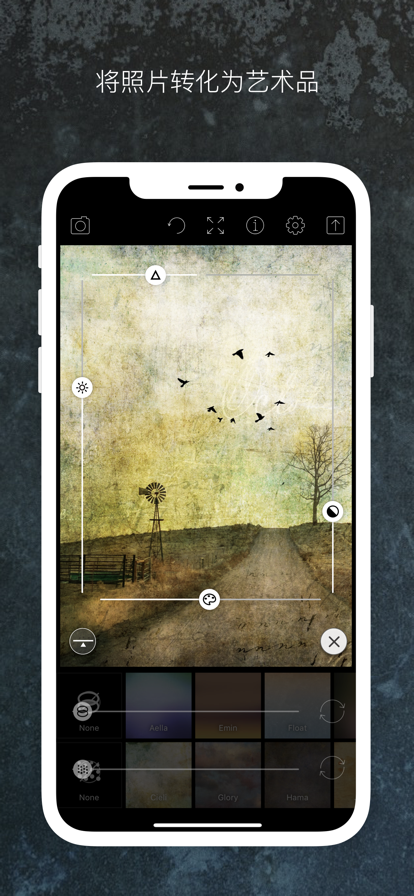 用照片制作成眩目多姿的艺术图片,从来没有现在这么容易过!有了Distressed FX,只需拍摄一张照片,然后从多种多样的纹理图案和叠加滤镜中任选其一,便可搞定。就算再平淡的照片,也能瞬间变成一件艺术佳作。 尤其适合静物照和风景照,这款应用会是你现有照片处理应用的完美补充。 Distressed FX由美国田纳西州的纹理艺术家Cheryl Tarrant精心设计的纹理提供支持。她的设计风格新鲜独特,广受欢迎,如今更可让你随身携带,随时采用。 欢迎关注Cheryl的Instagram主页:http://instagram.com/distressedfxapp 在Instagram上搜索我们的主题标签#distressedFX,浏览9万多张作品范例!