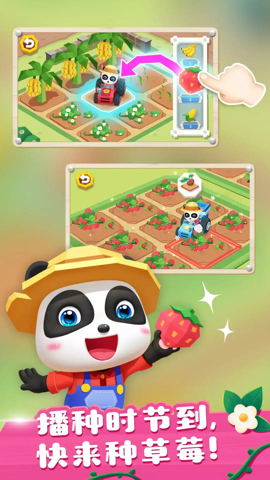 休闲的【小熊农场时光】马上开始咯! 宝宝们快来当一名农场主,学会管理农场:养鱼、种蔬果、牧牛羊、开美食工坊、聘用配送员工…… 在这里,宝宝们不仅能成为农场大亨,还将了解果蔬生长过程、认识动物生活习性,积累不少农牧知识哦! 农场生活开始啦,宝宝们准备好了吗? · 种植果蔬 打理农田 - 种植水果蔬菜咯:香蕉、苹果、茄子、小南瓜、火龙果……好多蔬菜呀,宝宝们快给它们浇浇水、施施肥,记住它们的名字和外形!认识果蔬 - 咦?还有些土地尚未开垦,宝宝们快驾驶农用车向前,开垦耕地!种植范围扩大,如果人手不够,宝宝们还可借用播种机、洒水车等进行耕种,这样效率会更高哦!认识农用车 · 饲养动物 扩大业务 - 鸡、兔、鱼、牛、羊等近十种动物,宝宝们如果想要照顾好它们,就要了解它们的生活习性:小鸡吃稻谷、兔子吃萝卜……宝宝们记住了吗?了解动物习性 - 母鸡会生蛋、奶牛产牛奶…… 这么多农副产品可以用来做什么呢?相信聪明的宝宝已经想到了——拿来售卖!售卖后,获得的收益要记得合理支配哦!学习理财 · 加工材料 制作美食 - 将小麦磨成粉,制作面包;采摘茄子,用来烤串;将母鸡生的蛋和培根一起放在锅里煎煮一番,真香啊!农副产品的这些“妙用”,宝宝们get了吗?了解美食制作过程 · 驾驶货车 配送订单 - 叮咚,客户下单啦。快驾驶货车,跟着地图导航,将物品及时送到小镇客户家里!呀!突然新增了好多订单,忙不过来怎么办?雇佣配送员,让他们来送货吧!考验应变能力 · 购买道具 升级农场 - 农场有点空荡荡的,宝宝们快去商店买一些稻草人等装饰一番吧!如果想让农场看起来更豪华,还可在马路两边安装欧式路灯哦!考验审美能力 宝宝们快来【小熊农场时光】,将农场打理得更好吧!