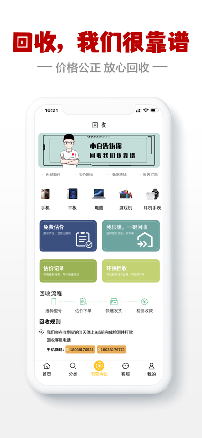 【高品质二手】:手机、电脑平板、配件耳机、相机无人机、游戏机等都能在这买到品质好的二手好物; 【靠谱回收,不会恶意折价】:保证真实估价,不套路,真实描述不手刀!报价不满意都可取消回收! 【换电池】所有电池均来自官方授权渠道,操作程符合官方维修认证规范,维修全程均有视频监: 【质检把控,严选品质】:全平台自营,质检团队把控商品质量,每一件商品都严格检验,每一台手机都要经过整机消毒、外观检测、功能检测、真实场景使用和测试等。 【平台保障】 1:提供7天无理由退货和1年保修服务· 2:承诺没有水货,没有猫腻,没有翻新,没有私拆,没有屏幕打磨,大部分手机可享受品牌官方售后保修。可开发票。