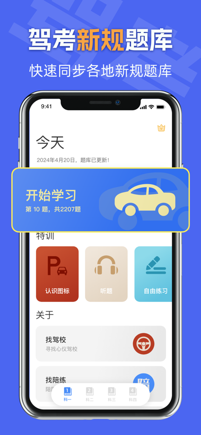 一起考驾照,拿证更高效!免费精简题库,考驾照用这个宝典就对了!学开车必备驾考学习助手!驾校、教练、拿证学员强烈推荐,通过率高,考点押的准!同步更新各地方驾考题库,高效的备考攻略,堪称2024年学车宝典,助您满分通关! 同步驾考科目一、科目四精准题库,紧随驾考新规要求,另有上海、武汉等地方新题。特邀大牛专家对驾考题库进行科学分类整理,根据章节、顺序、随机练习多种模式,帮助学员在短时间理解并牢记题库。 针对驾考难题、怪题、偏题、易错题等,我们逐题进行知识点解析。让您轻松记忆交通标志、交警手势。再也不会傻傻分不清。休息间歇,轻松巩固,快速拿证!高度还原试题难度,模拟真实考试场景,让您轻松上阵,驾考无压力。