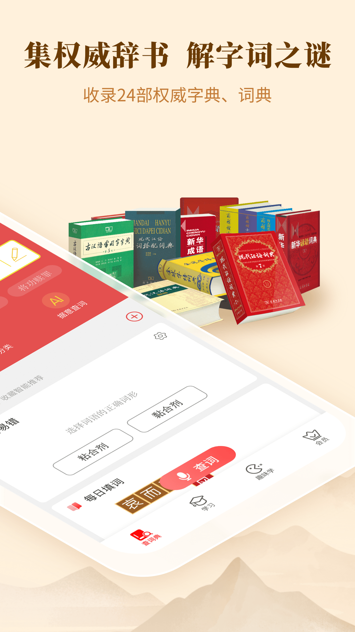 《新华字典》App,商务印书馆权威出品,中国社会科学院语言研究所编修。新增"工具书云平台"模式,收录27部权威字词典,为用户打造一站式学习助手。 权威辞书知识 • 新中国首部现代汉语字典,汉语辞书典范之作 • 荣获第四届国家图书奖荣誉奖、第三届国家辞书奖特别奖、第三届出版政府奖图书奖提名奖 • 获“最受欢迎的字典”和“最畅销的书(定期修订)”两项吉尼斯世界纪录 • 入围数字出版精品遴选推荐计划,累计下载量超1亿次 全能学习宝库 【基础夯实】完整收录《新华字典》,同步纸质书更新 【拓展升级】融合《现代汉语词典》《古汉语字典》等共27部工具书 【发音规范】新闻主播标准读音,支持跟读对比练习 【书写指导】动态+静态笔顺演示,屏幕临摹更直观 【专项突破】多音字精讲+易错字汇编,扫清语文学习雷区 趣味学习法宝 【汉字探秘】从甲骨文到简体字,动态展示汉字千年演变 【诗词天地】精选小学初中必背古诗,配套赏析注解 【闯关游戏】字词接龙/成语挑战/古汉语挑战,边玩边学 【每日打卡】易错字提醒+组词接龙+成语解密,5分钟轻松积累 智能查词利器 【纸书联动】扫码即查纸质书生字,笔顺动画秒加载 【多模检索】支持语音输入、手写识别、拼音、部首等多种查词方式 【学习管理】云生字本自动同步,支持个性化分类收藏 【智能助手】实时解答语文知识,推荐近反义词辨析 日新无已,望如朝曙,自上线以来,《新华字典》App不断丰富内容,提供了数十项增值服务,荣获诸多奖项,全面提升了“国典”品牌价值。 《新华字典》App,随时伴你身旁的“良师益友”。