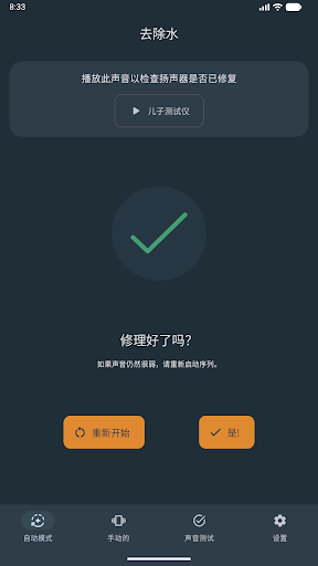 💧 扬声器进水了?用优化的声波频率轻松排出!<br><br>手机进水后,声音变得沉闷或失真?扬声器清洁器利用优化的声波频率,将手机扬声器中的水排出,不到一分钟即可恢复清晰的音质。<br><br>🎵 工作原理<br><br>当水进入扬声器时,会阻碍声音传播,导致声音沉闷。扬声器清洁器会生成精准的声波,产生足以将水滴推出扬声器的振动。<br><br>✨ 主要功能<br><br>自动模式 - 一键清洁<br><br>启动专为与手机扬声器共振而设计的自动频率扫描序列,轻松排出水分。只需轻点按钮,将音量调至最大,即可让应用程序自动完成清洁工作。<br><br>手动模式 - 精细控制<br><br>找到与扬声器共振的最佳频率,实现最佳清洁效果。您可以调整频率、振动和脉冲设置,优化清洁过程。<br><br>声音测试<br><br>清洁后,请使用内置音频样本测试扬声器,确认其恢复正常功能。<br><br>📱 适用于:<br><br>手机掉入水中、水坑等<br><br>扬声器暴露在雨水或潮湿环境中<br><br>运动或海滩旅行后声音闷闷的<br><br>扬声器日常维护和优化<br><br>🔧 简单三步操作:<br><br>将音量调至最大<br><br>点击“清洁扬声器”开始清洁程序<br><br>将手机屏幕朝下放置,运行 60 秒<br><br>重要提示:<br><br>如果声音仍然闷闷的,请重复此程序 2-3 次<br><br>对于顽固问题,请尝试使用不同频率的手动模式