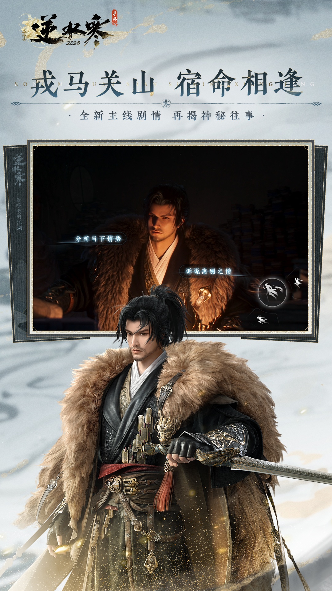 《逆水寒》手游是一款国风开放世界武侠游戏,以精湛细腻的画质、真实灵动的江湖氛围、颠覆传统MMO套路、智能AI深度植入影响游戏世界而著称,被称为“会呼吸的江湖”。游戏以纯粹的东方古典审美,结合现代芯片图形技术,形成了格调不凡、自成一派的游戏美术风格。又以颠覆性的游戏设计理念,和对角色扮演游戏陈旧套路的反叛,以及将国风武侠结合开放世界的诸多新奇尝试而获得了玩家的广泛期待。<br><br>6月28日,逆水寒手游正式开启2.0新赛年,期待继续和万千玩家在会呼吸的江湖中遇见,一起携手,让MMO再次伟大。<br><br>所有江湖偶遇,都是宿命相逢。