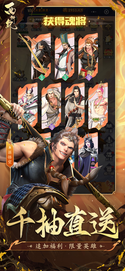 【暴击福利!满屏红将躺着拿!】 白嫖狂喜!千抽摇人!推图送十连!橙将三选一!开局轻松凑阵容! 登录送神将!次日登录即送治疗神将天羽织!七日登录直送强力输出二郎神!八日登录抱走顶级辅助道德太尊! 开服冲级!45级解锁神将敖灵!!55级赠送红色神装!推图就送极品红将帝释天!完成任务即可获得最强法系输出灵宝天尊 更有多种福利活动,小小投入多重收获,天天有惊喜! 【正版授权!西行宇宙大集结!】 《西行纪》动漫正版授权,梦回追番时光!完美复刻天灵、暗魂界、生灵三大势力激情对抗,巅峰大战一触即发 【烧脑耐玩!智商碾压的快感!】 海量技能进阶,战技、神通、神兽、法器、化形、装备玉石超多组合,千变万化;知己知彼,打造奇迹战队,用最激动人心的策略击败对手! 【指尖快乐!碎片时间爽翻天!】 随身开打,丰富辅助功能,多地图支持一键托管,轻松护肝。摒弃机械活动时间,限时活动不再错过,解放空闲,好玩不累。