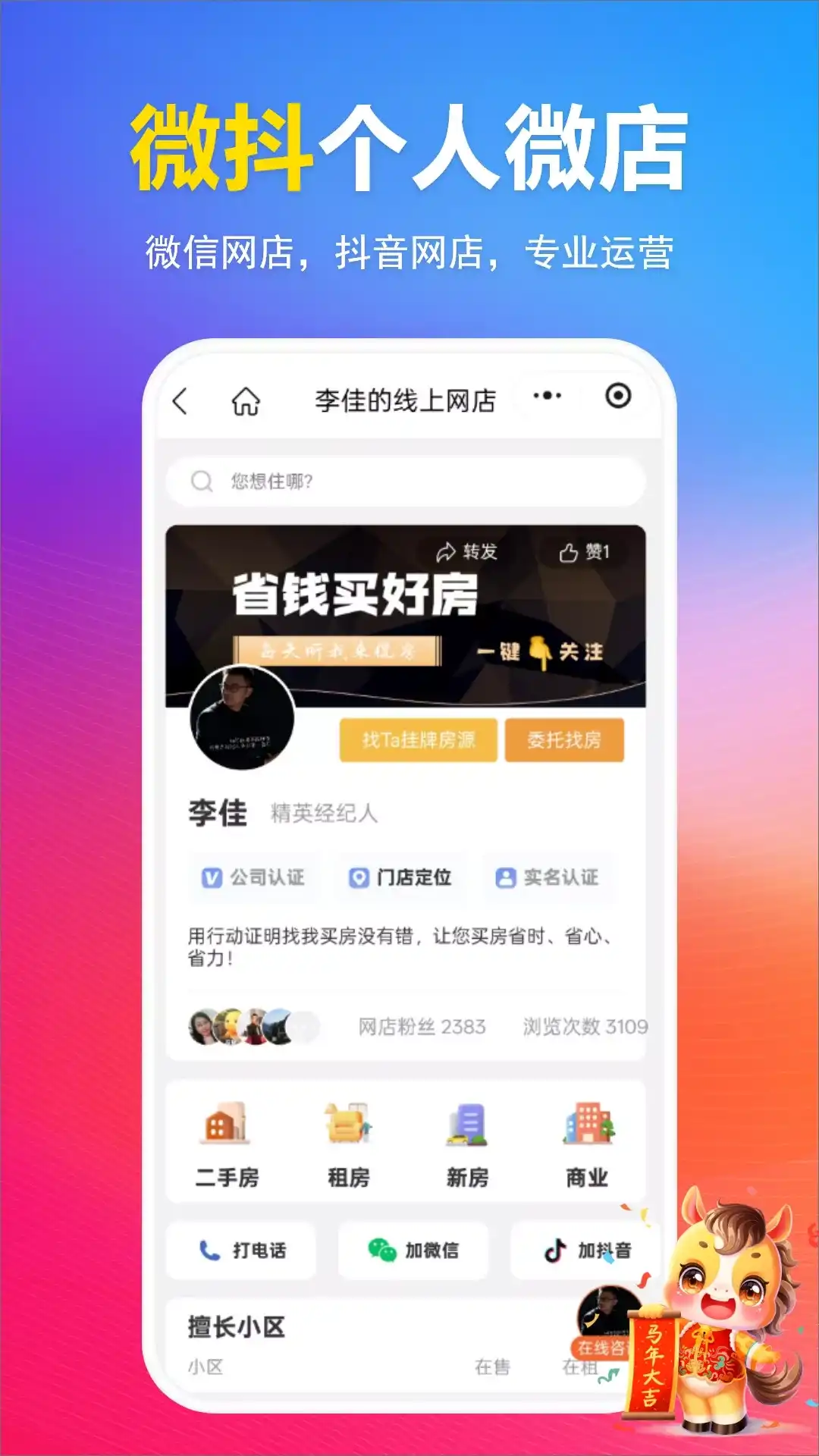 免费下载注册即可使用这款专业给经纪人打造的中介系统,基本覆盖房产中介所有日常业务,仅自己存储管理房源永久免费,团队企业版498一年,手机加电脑端通用,采用阿里云线上金融级信息存储技术,房客源信息安全保障,还能辅助你全方位运营获客,包括短视频获客!2016年上线至今,始终坚守给全国经纪人一个极致性价比的房产SAAS管理系统,新一代中介软件,也是专业的房产中介内部管理系统,专业中介房屋管理系统,10大核心功能介绍带你了解这款专业的房产中介管理系统! 【房源存储,安全护航】 团队使用,房源存储录入套数不限,手机+电脑端双房产系统同步,阿里云数据存储,为您的房源管理,房产客源管理护航! 【抖音挂载,超能获客】 房产中介在抖音视频或直播中挂载自己的房产小程序名片,客户只要一点你视频中挂载的房产小雪花,就能给你留资,大大提升房产中介的获客效率! 【网店运营,智能分析】 生成线上房产网店一键分享给客户,让客户自己随心来你中介系统中的房产网店看房,并生成浏览轨迹,给您的房产客户智能数据分析,让全房源系统助力您的房产成交!成为您好用的中介系统!也成为您贴心的房源软件! 【协同管理,修改轨迹】 房产中介同事之间房源管理协同,谁修改了房屋价格,或查看了您的中介系统中的房东电话,任何在房源软件中的修改操作,都会在您的房源系统中的房源详情页,线留下日志记录,让内部房屋管理变得安全,方便! 【私域保护,团队共赢】 这款全房源系统,也就是这款专业的房源软件里的智能保护私域功能是这样的,比如你在这个全房源系统里录了10套房源,你同事们在全房源系统里录了90套房源,前提是你们在全房源管理系统中是属于一个公司的,那么通过这个房屋系统软件转发给你的客户看,你的房产客户在你的房产系统网店中共能看到100套,并且在这款中介系统中显示的100套房源的归属,自动会显示你的电话展位!所以我们房产中介团队可以在这款房源系统中放心的录入房源,判重房源,管理房源,同时录入有楼盘字典,可以很好的判重,有了房产系统中的私域保护功能,就再也不用担心大家会在这个中介系统也就是全房源系统中录重复房源了! 【界面简洁,功能齐全】 整个房产 ERP系统界面非常简洁,功能全:隐号拨打,通过中介系统也就是这款房源系统去群发房源,房产电子签约,新房管理系统,楼盘管理系统,新房报备系统,住宅房屋管理,写字楼管理,写字楼软件,商铺管理,厂房管理,房产中介系统中的房源跟进,中介人员管理系统,中介客源管理系统,也就是房产客源管理系统,房产合同管理,中介经纪人绩效数据,房产职位权限等满足所有房产业务和房源管理所需!作为一款专业的房产经纪人系统,也就是房产经纪人的软件来说,非常全面的匹配了日常我们房产经纪人的业务。是一款很好用的房产业务获客销售工具。 【智能分享,轻松获客】 您所在房产中介公司中的房源,也就是中介系统的房源,可通过该房源软件一键智能合成推广到房产微信获客,房产抖音获客,房产快手获客,房产小红书获客,作为专业房屋管理系统,和专业免费的房产中介管理系统,我们全房源系统已经充分考虑到房产中介管理业务中的经纪人私域管理运营的重要性! 【视频辅助,做新媒体】 房产抖音短视频辅助工具,房产直播地图搭建,房产直播间搭建,房产小程序挂载,这款专业的中介系统中,还内置提词器,违禁词检测,房产爆款文案,房产直播素材,还有抖音精品房产课免费学习!持续更新!让你不光能进行房源管理,还能进行房产新媒体获客! 【房源联盟,抱团取暖】 可与当地一起使用全房源系统的房产中介公司组建房源联盟,有序共赢!