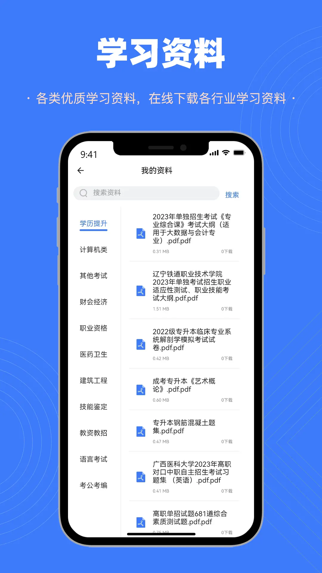《智考典题库》包含各类职业资格考试题库,一款专业化AI智能学习题库软件。致力于学员轻松考试,提供了建筑工程、医药卫生、学历提升、财会经济、考公考编、职业资格、技能鉴定、计算机类、语言类等热门职业考试题库和网校,包含历年真题、章节练习、模拟试卷、预测试卷等题目帮学学员提高考试成绩。<br><br>【主要功能】题库实时在线更新,持续坚持每一次考试都与新大纲保持一致;AI智能化练习,提供背题模式、模拟考试、章节练习等多种学习模式,同时我的错题、我的收藏、错题榜可以提高学员的薄弱点、提高学习成绩。<br><br>【主要优势】学员可以寻找自己需要的免费文档、平台24小时AI答疑客服回答学员备考问题、知识点解答、人工客服全程在线;网校配套题库学习更高效,平台定期名师免费课程分享;一站式备考服务高清课程、题库、教务服务、AI智能学习模式、老师答疑的综合类职业考试学习平台。