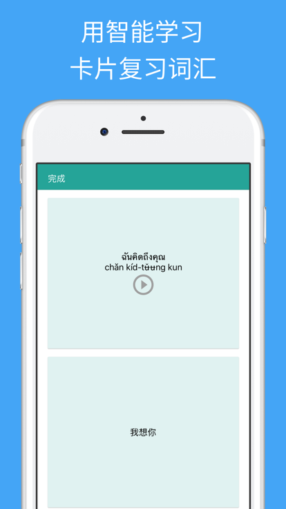 ***边游泰国边学泰语*** 轻松学泰语手册是一个免费的泰语应用,能够使你快速的简单的学泰语。 所有泰语短语和单词呈现给你两个语音和原有的泰语写作。由泰国当地女孩录制 保存你最喜欢的短语和字并顺利复习他们。 使用间隔重复的技巧与卡片来学习你的词汇。 用有趣的泰语问题来测试你的知识并复习你的成绩。 ***在周游泰国时生存*** 在泰国使用泰语手册来生存。所有重要的生存短语都包含在内。 例如,在泰国对出租车司机使用应用来告诉他们你想去哪里。 搜索所有的短语和单词,以快速访问你所需要的。 ***主要特点*** *300+个免费的短语和字 *由泰国当地女孩录制 *高品质音频 *间隔重复学习系统 *问题来复习你的技能 *追踪你的学习进程 *保存你最喜欢的短语和字 *快速查找功能 *查看细节来逐字逐句的学短语 *复制短语到剪贴板(通过长按短语) *能减慢语音播放速度 *调整问题和卡片设置 泰语->汉语,汉语->泰语,发音->汉语,汉语->发音 ***11 免费学习类别 *** 在以下类别中学习300+免费的泰语短语泰语语字词: * 泰语基础对话 * 泰语问候 * 方向和地点 1 * 方向和地点 2 * 住宿 * 在泰国外出就餐 * 在泰国购物 * 在泰国观光 * 紧急情况 * 时间和日期 * 泰语数字 ***22类专业版*** 用以下附加的类别在专业版中学习所有 1000+泰语短语和字: * 高级的会话 * 健康 * 过境 * 问题 * 地点 * 食物 * 蔬菜 * 水果 * 颜色 * 浪漫史 I * 浪漫史 II * 邮局 * 电话&网络 * 银行 * 职业 * 商务会谈 * 兴趣 * 感受 * 身体 * 动物 * 国家 * 家庭 ***反馈赞赏*** 如果你喜欢这个应用程序,请用几秒钟给一个评价或评论。如果你有任何意见,建议或劝告我会很高兴,如果你让我知道khwanoi.learnsimply@gmail.com。 ***关于我们*** 网址:simplylearnlanguages.com/thai 请联系: facebook.com/simplylearnlanguages 愉快的学习泰语!