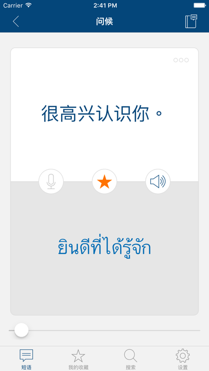 非常感谢大家的热情反馈,应大家要求,重新设计了一对一教程收听逻辑,把播放器单独拿出来,由用户手动选择是否显示。下一阶段,我们将增加口语练习评测功能,更好地帮助用户锻炼口语。 ------------------------------------------- 谢谢大家,反馈很是热情,这个版本增加了上次所说的3个功能,请大家帮我测试一下,如果有问题,请告诉我们,谢谢了。 ------------------------------------------- 感谢大家的反馈,反馈的意见主要有以下三个: 1、希望增加自由收听内容 2、用于练习的语音太少了 3、没有缓存清除功能 所以接下来我们将增加这三个功能,希望大家继续踊跃反馈。 ------------------------------------------- 简单而实用,包含了最常用的基础泰语口语与短语,随身携带的泰语老师,打造一口流利泰语。 最具代表性的短话和句子,包括了日常生活中的常用短语和句子, 包括商店,旅行,酒店,餐馆等不同大类.程序操作简便,界面直观,内容丰富,是学习口语的好帮手. 软件功能: 1,专业语音识别,校正你的口音. 2,多种场景,覆盖生活的每个方面. 3,简约的UI设计,清新自然.