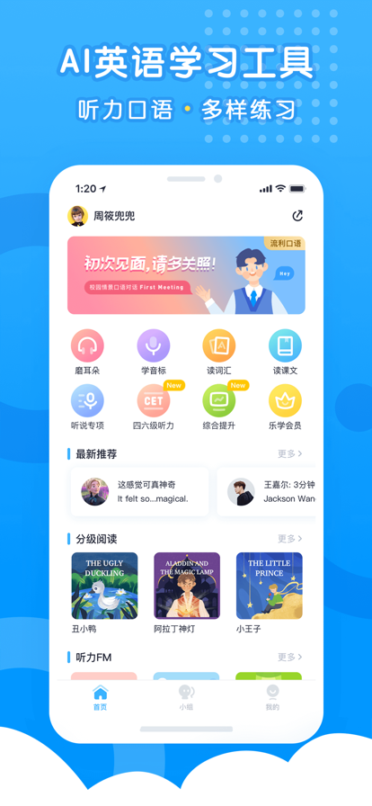 【乐听说 - AI英语学习工具】 新东方为广大英语学习者打造的AI英语学习工具! 资深教学教研团队,数万小时精心投入,规划适合中国学习者的英语学习路径。 音素级AI语音智能评测,海量中国用户发音数据分析,精准的发音诊断与指导。 乐听说提供多种类型的英语听口专项练习和综合提升练习,系统可以根据用户的语音实时给出准确细致的评分,帮助用户进行科学的自主学习,提升英语听力口语水平和综合应用能力! 【功能介绍】 【磨耳朵】像听收音机一样收听课本中的音频,随时随地想听就听,逐步培养英语语感。 【学音标】48个国际音标闯关式学习,外教真人发音、动画教学、音素级AI智能评测。 【读词汇】教材词汇同步跟读,单词、短语、例句逐步练习,及时纠正发音问题。 【读课文】包含分句跟读和课文朗读,通过反复练习,培养英语语感,自信开口说英语。 【听口专项】针对听力口语考试的多种题型进行专项训练,补足弱项,提升听力口语能力。 【四级听力】汇集最新四级听力真题,通过模拟练习,帮助用户在四级考试中取得理想成绩。 【综合提升】通过各类英语综合内容的学习和针对性的辅助练习,帮助用户提升英语综合应用能力。 【分级阅读】经典英文分级读物,享受阅读乐趣,积累词汇量,逐步培养英语思维。 【听力FM】精选热门听力素材,先练听力,再练口语,让听力口语学习事半功倍。 【流利口语】模拟英语学习经典使用情景,知识点讲解、逐句精练,练就流利地道的英语口语。 【英文配音】精选英文短视频片段,逐句模仿、实时打分,让英语学习充满趣味。