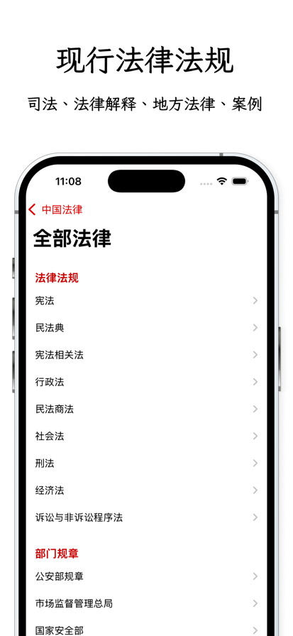 收录了2000多部中华人民共和国法律法规,全部免费开放浏览!便捷的分类浏览操作,快速索引定位,全文搜索,书签收藏! 如果您发现有未及时更新的条款或者文本错误,请随时联系我们进行反馈,我们会保持更新,谢谢。 软件特色: 1. 法律法规详细分类,一键查找 2. 全文检索,标题与章节检索 3. 快速索引定位 4. 升级功能后可一键复制相关条款,并发送给指定邮箱 适合法律专业者随身查找使用,比如律师,法律学者,法律专业学生,公务员考试等。 Chinese Laws 法律大类一览: 国际法、行政及行政诉讼、经济法、民法、民事诉讼及仲裁、商法、司法制度及法职、宪法、刑法、刑事诉讼 细分类别众多,可使用查找功能快速获取,比如直接搜索保险、贷款、抵押、信贷、托管、索赔、贸易等都可以获得相应的条款及条文明细结果。