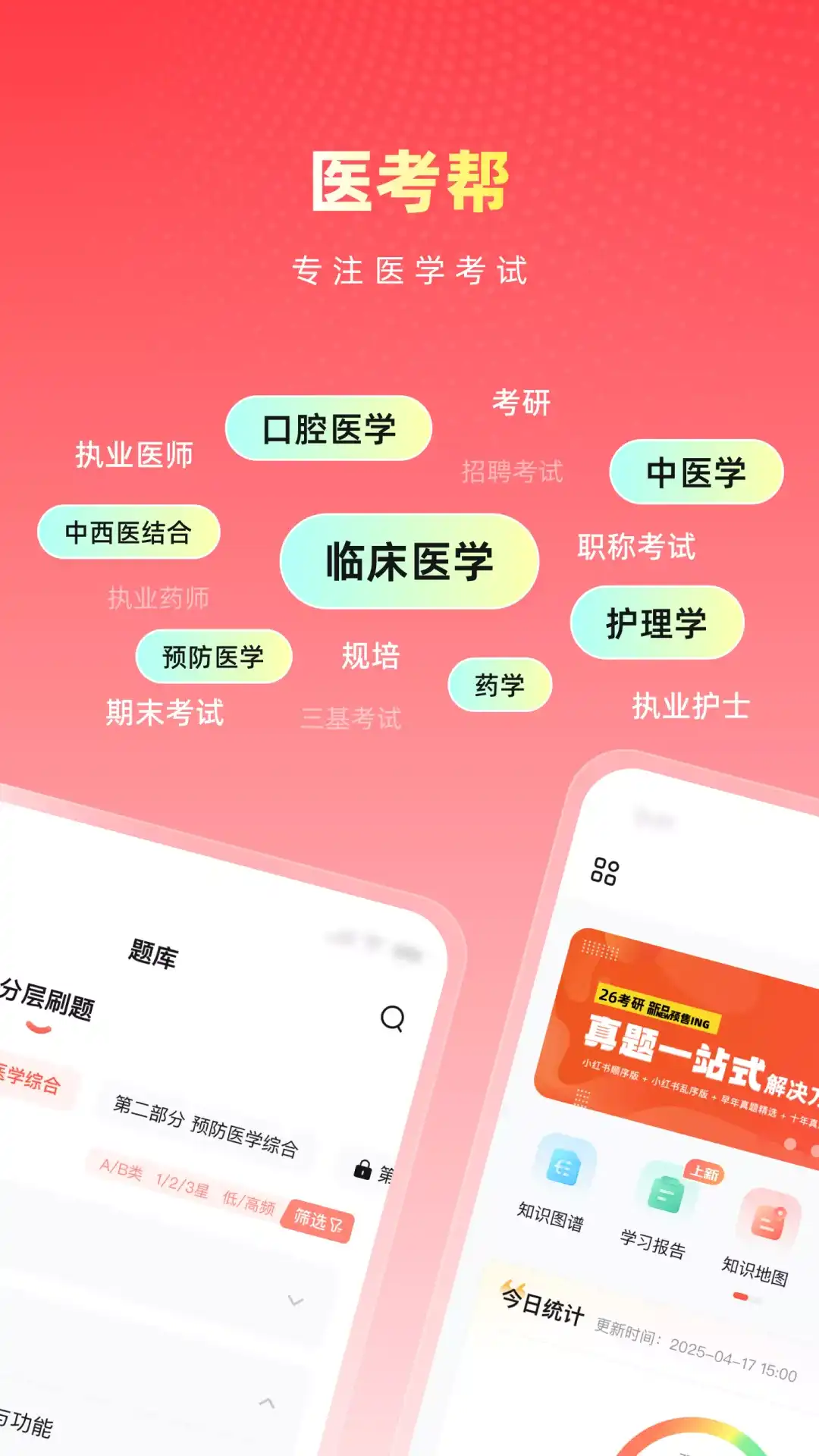医考帮APP用户覆盖了医药护技人群,从院校教育、毕业后教育和继续教育全职业生涯,从期末、考研、医师资格、规培、职称考试等300多个考试学科,全站题目总数达到360万,服务用户超过500万,每日活跃用户达30万,已成为医学生及医生学习备考与考试刷题的首选品牌。 【亮点一:权威题库】 包含历年真题、精选练习题、模考卷、预测卷的精品题库,每年按照最新大考试纲优化题目和题型。 【亮点二:功能多样】 题库分类科学合理,题库支持多种刷题模式,收藏题、点赞题、错题、笔记、AI自助组题、刷题统计等实用功能,满足用户多样化的学习需求。 【亮点三:题库评论】 题库设置题目评论区,将每一道题目作为独立主题展开讨论,有大量学霸总结记忆口诀和解题技巧,名师及研究生学长学姐精析考点。 【亮点四:医学论坛】 深度融合“社交+学习”场景,打造从“工具”到“生态”的互动社区,APP内置论坛有上百名学长学姐在线答疑,数万名考生学习交流,已成为医学考生备考路上的精神家园。 【使用问题或意见建议】 联系客服路径:医考帮APP-我的-帮助中心-联系客服 建议收集路径:医考帮APP-我的-意见反馈